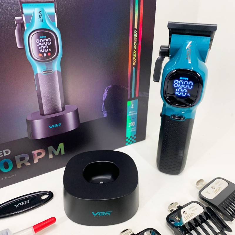 Акумуляторна машинка для стрижки VGR V-886C GREEN — це потужний та універсальний інструмент, створений для професійного та домашнього використання. Модель виділяється стильним зеленим дизайном та міцною конструкцією, а високошвидкісний мотор зі швидкістю 9000 об/хв забезпечує стабільну та ефективну роботу навіть при стрижці густого та жорсткого волосся. Пристрій оснащений LED-дисплеєм, який відображає рівень заряду та стан машинки, роблячи процес догляду максимально зручним та контрольованим.