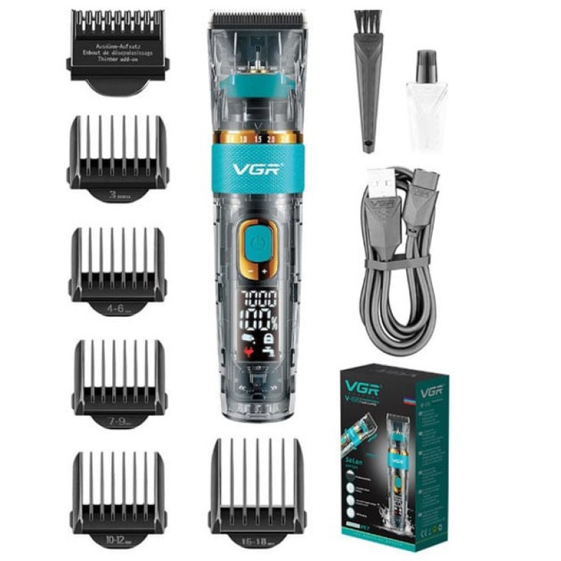 | Назва | Машинка для стрижки волосся і бороди VGR V-695 з LED дисплеєм IPX7 вологозахист, Окантувальна машинка |