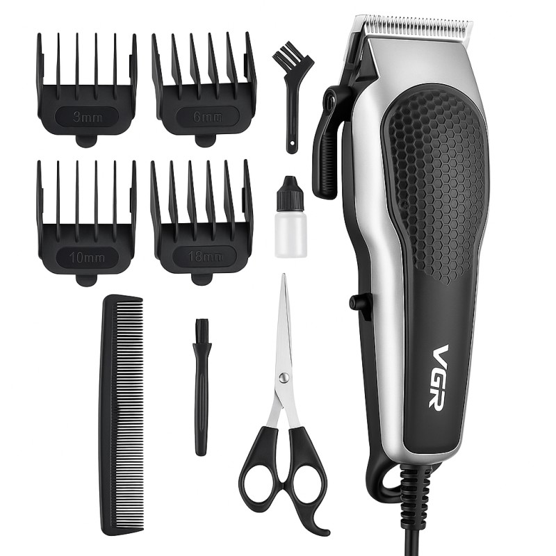 Машинка для стрижки VGR V-130 проводная профессиональная с насадками для окантовки триммер для волос