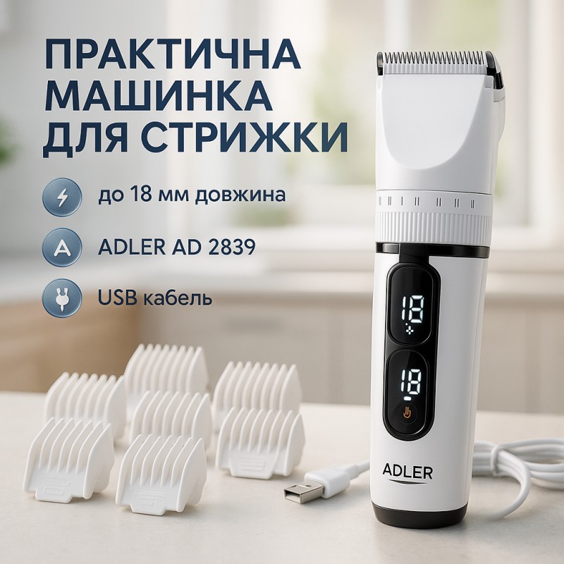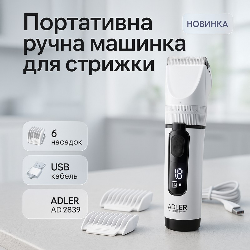 Машинка для стрижки волос ADLER AD 2839 аккумуляторная с дисплеем