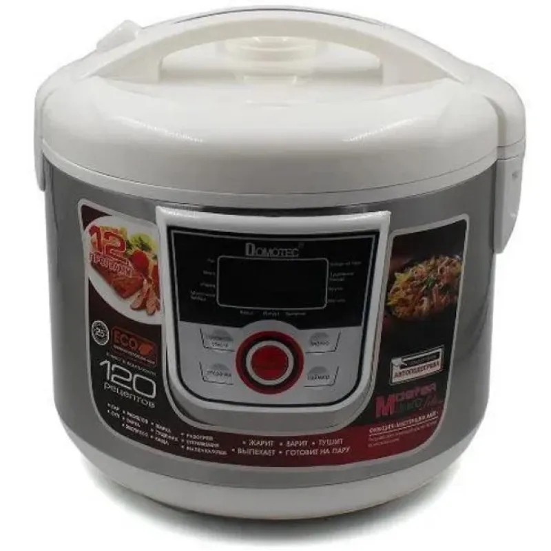 Мультиварка Domotec MS 7727 оснащена 12 автоматическими программами, функцией Мастер шеф лайт, что позволяет менять время и температуру в процессе приготовления, а также вместительной пятилитровой чашей с антипригарным покрытием.