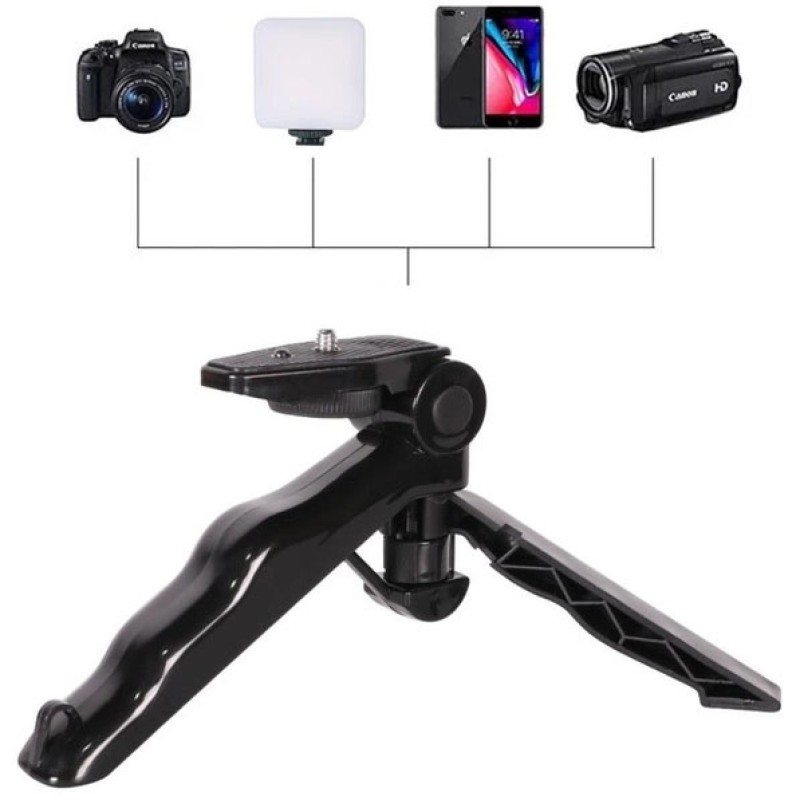 Багатофункціональний трипод - може виконувати функцію як звичайної настільної триноги, так і ручного міні тримача. Прилад зручно складається та змінює свою форму. Для закріплення на ньому гаджетів використовується універсальний отвір для шурупа ¼ дюйми. Такий вид кріплення дозволяє легко встановити на ньому камеру, фотоапарат, телефон, світлодіодну панель та інші аксесуари.