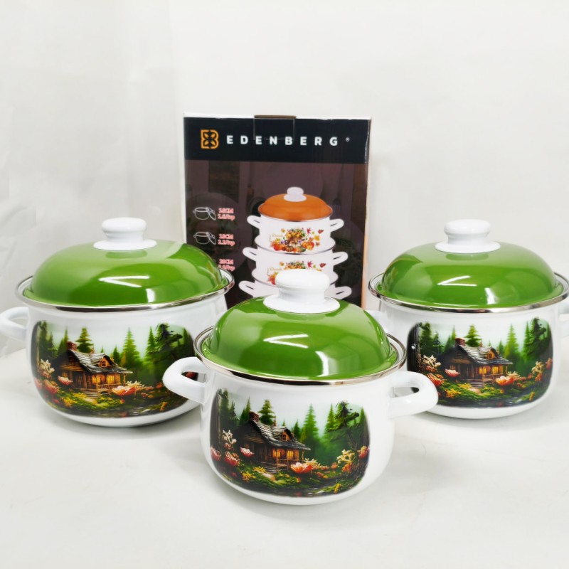 Набір каструль Edenberg EB-1889 – це поєднання стильного дизайну, надійності та зручності у використанні. Цей комплект призначений для комфортного та здорового приготування їжі. Він включає три каструлі різного об'єму, кожна з яких оснащена кришкою, що щільно прилягає.