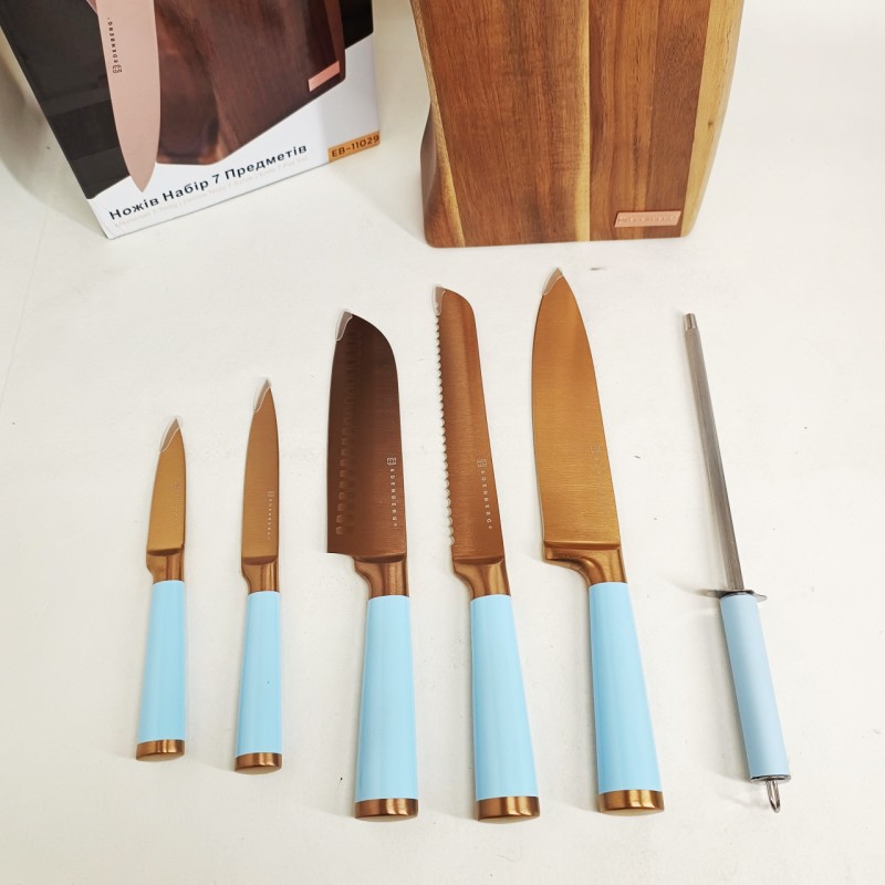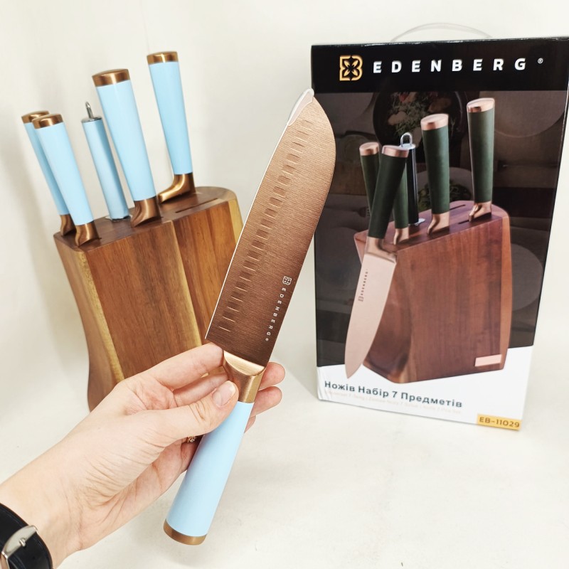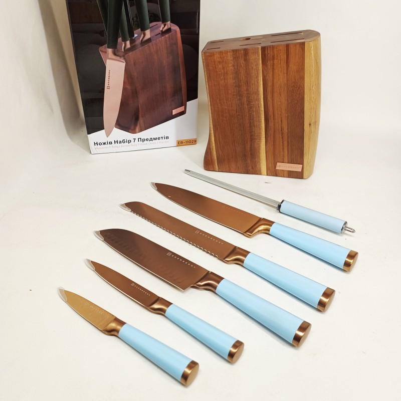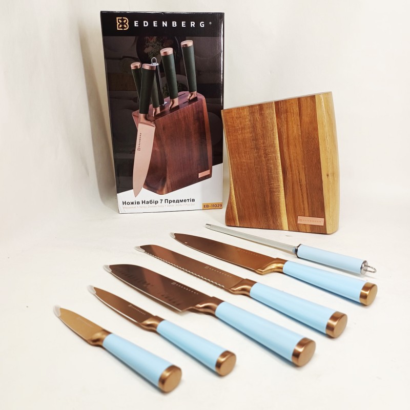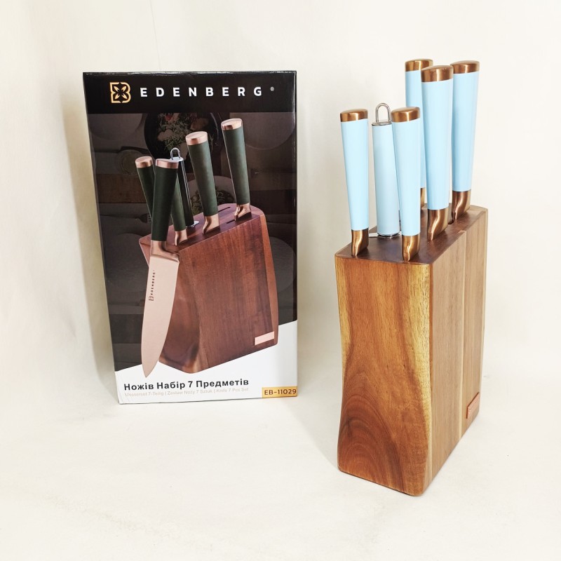 | Назва | Набір кухонних ножів Edenberg EB-11029 із дерев'яною підставкою 7 предметів Blue |