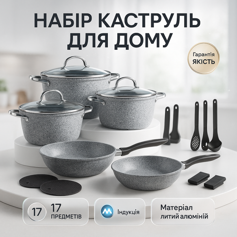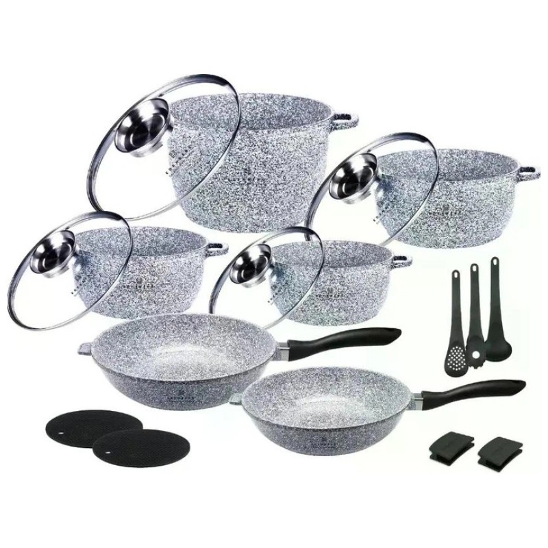 Набір посуду з мармуровим покриттям Edenberg EB-8183 — це практичний та функціональний комплект для комфортного приготування їжі щодня. Завдяки розширеній комплектації з 17 предметів, набір відмінно підходить як для невеликої родини, так і для приготування страв на велику компанію.
