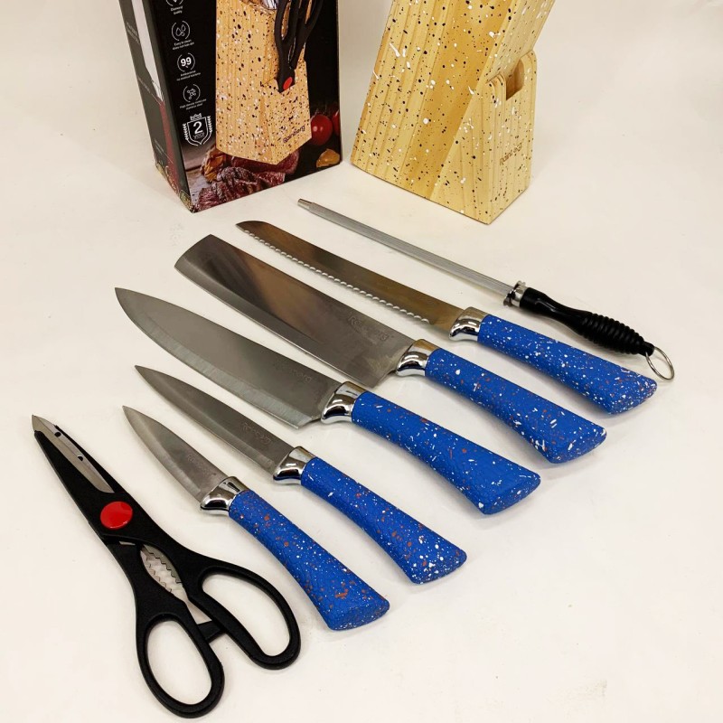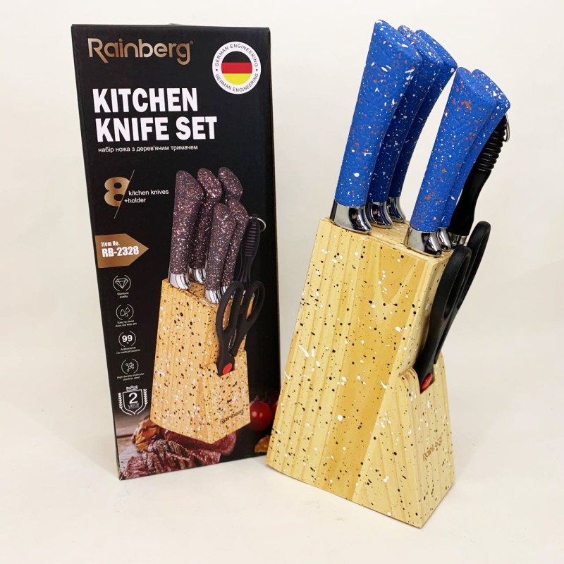 | Назва | Набір ножів із нержавіючої сталі з основою Rainberg RB-2328 Blue |
