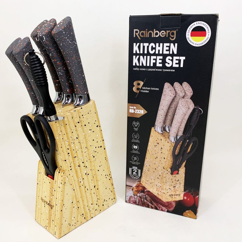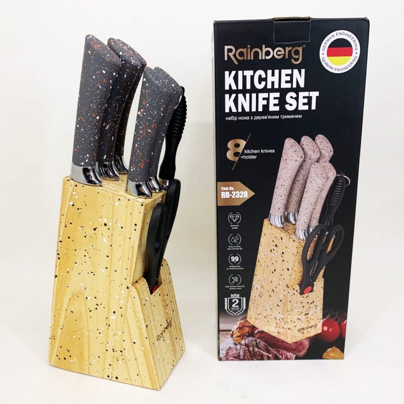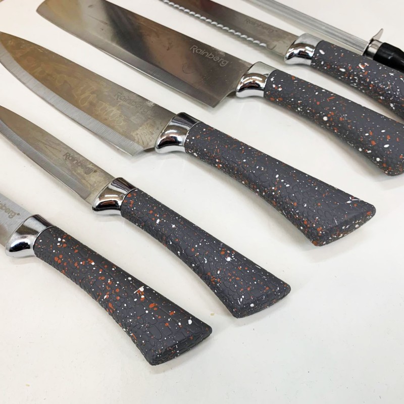 | Назва | Набір ножів із нержавіючої сталі з основою Rainberg RB-2328 Gray |