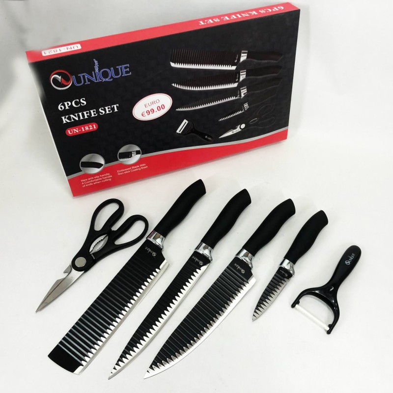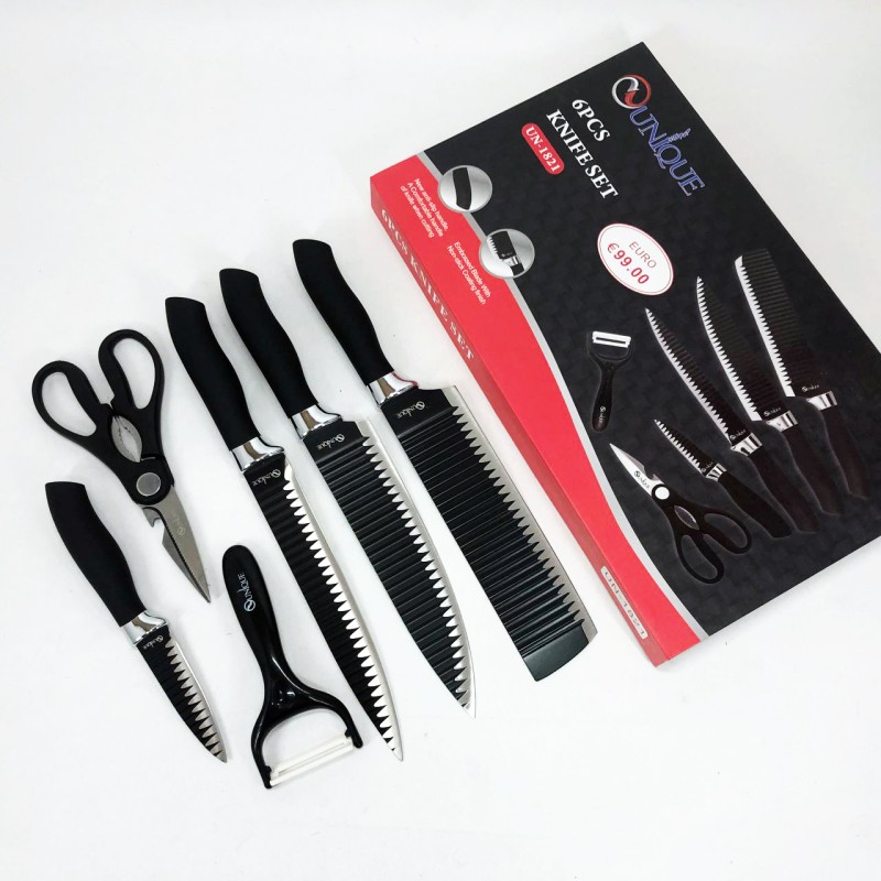 | Назва | Набір ножів UNIQUE UN-1821 кухонні ножі ножиці та овочечистка |