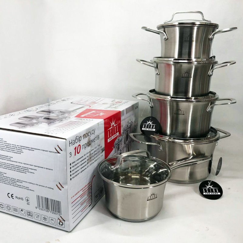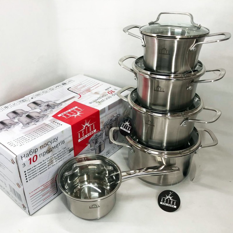 Набір посуду 10 предметів ASTRA A-2310, набір каструль для електроплити, збірний набір каструль