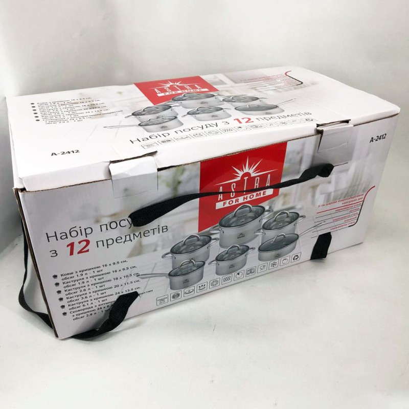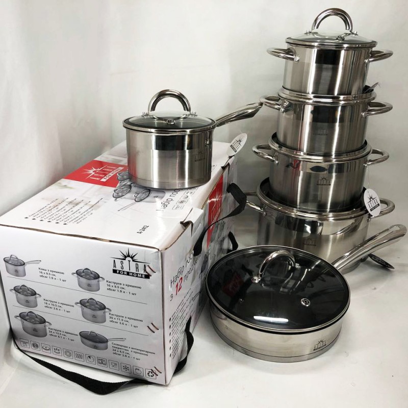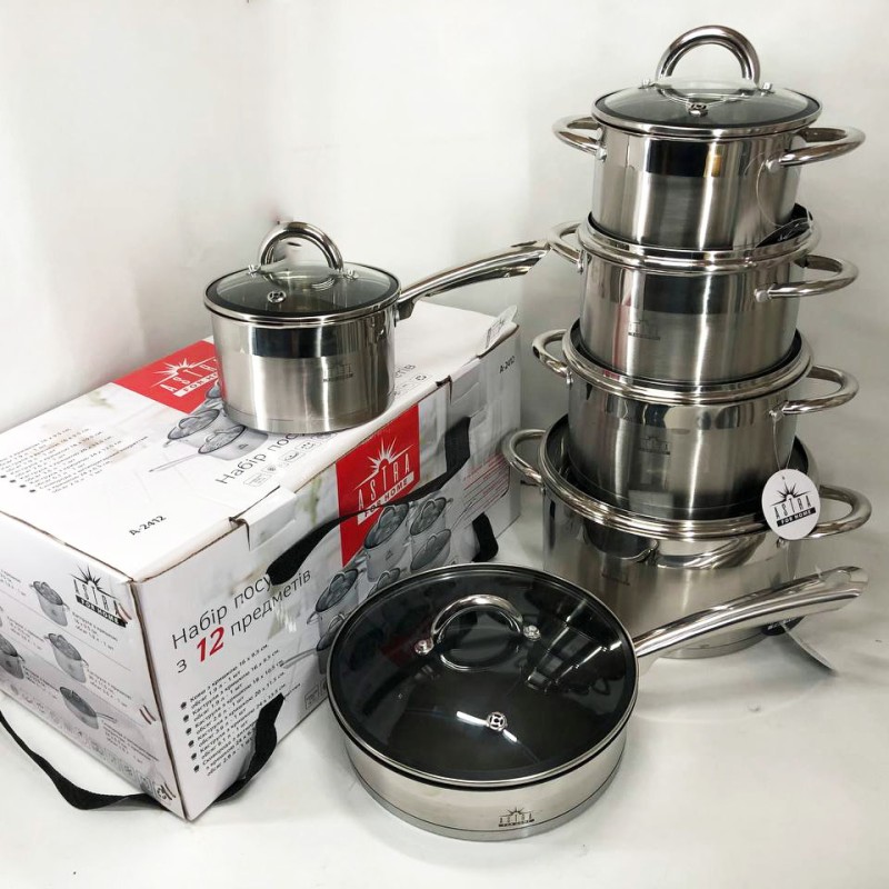 Набір посуду 12 предметів ASTRA A-2412, набір казанів, набір каструль з нержавіючої сталі можна замовити в інтернет-магазині Shtyrman. Перевіряйте модель, виробника, наявність і характеристики перед покупкою.