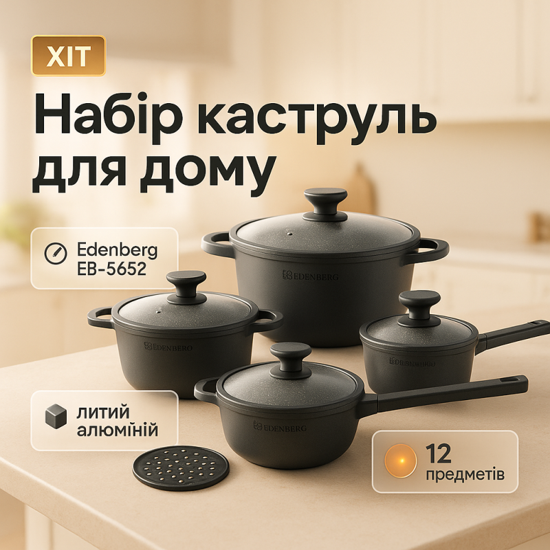 Набір посуду Edenberg EB-5652 12 предметів з мармуровим антипригарним покриттям можна замовити в інтернет-магазині Shtyrman. Перевіряйте модель, виробника, наявність і характеристики перед покупкою.