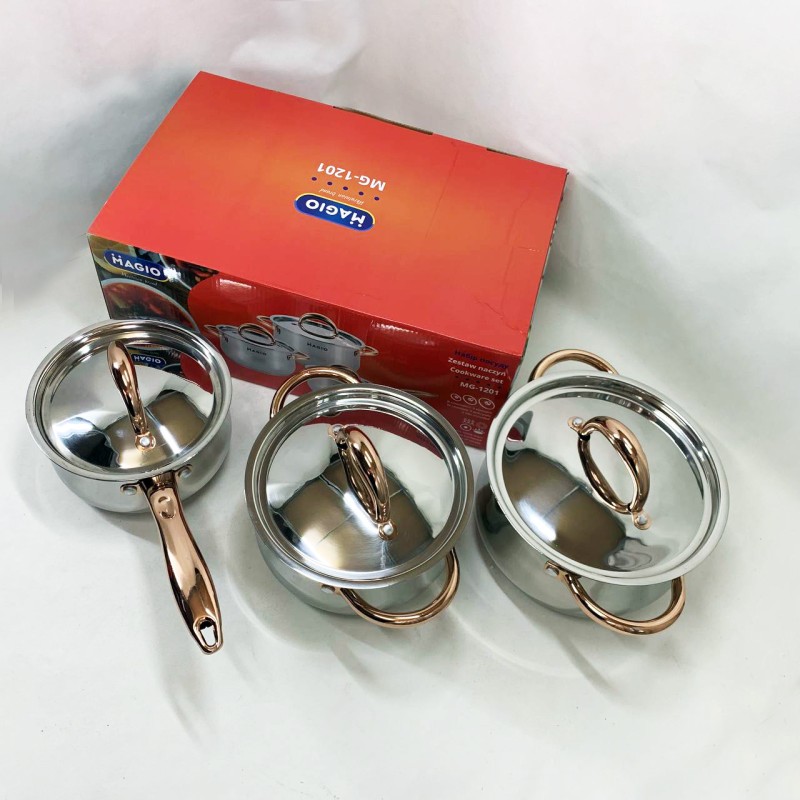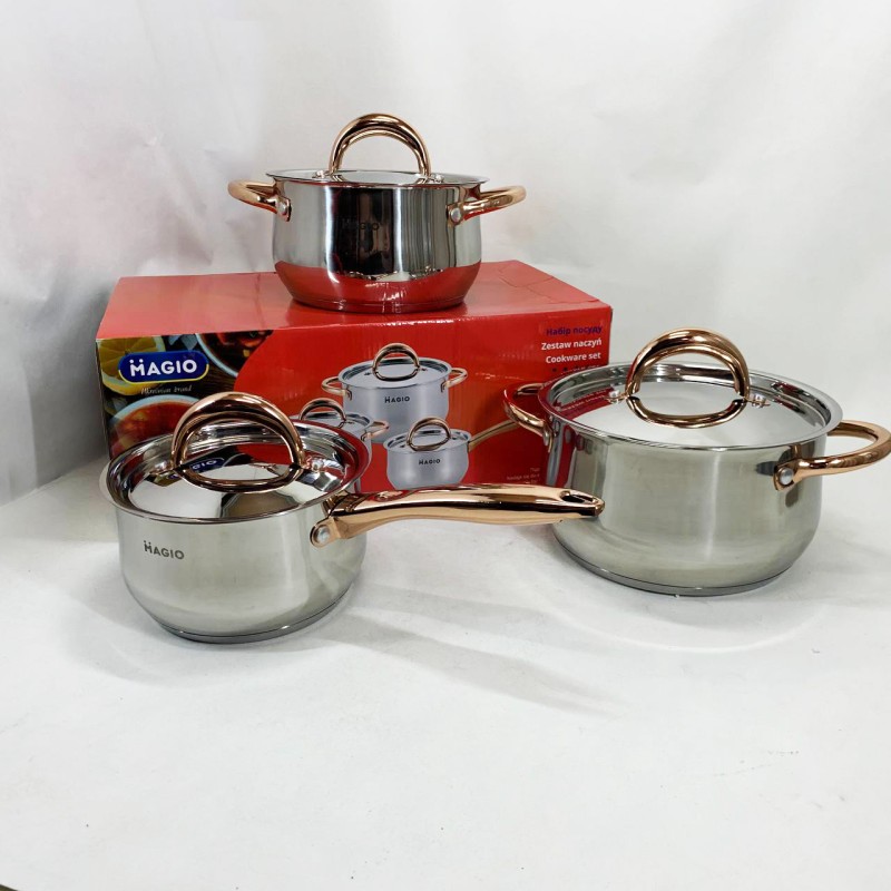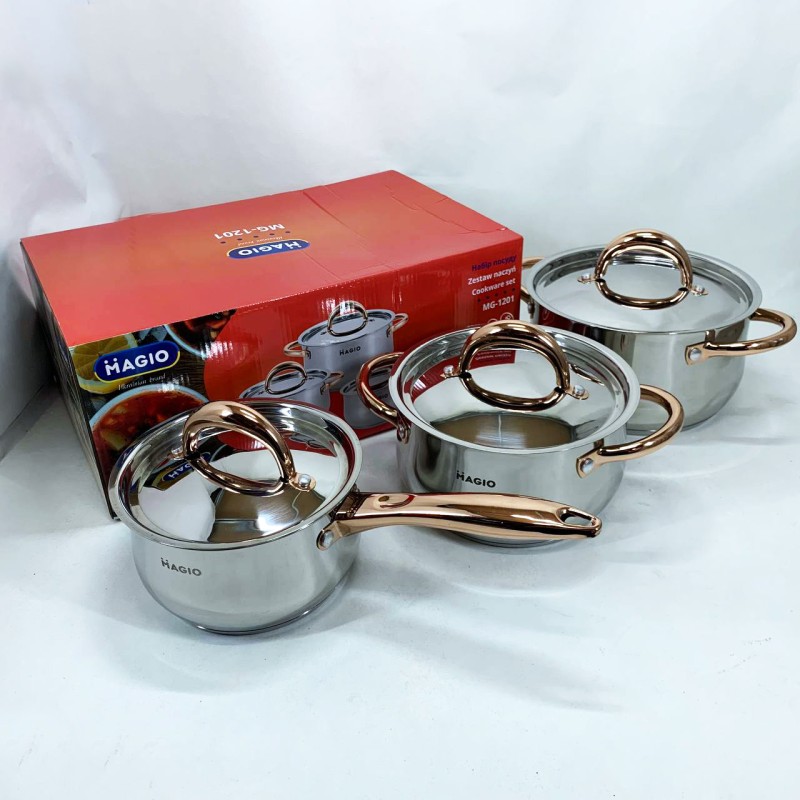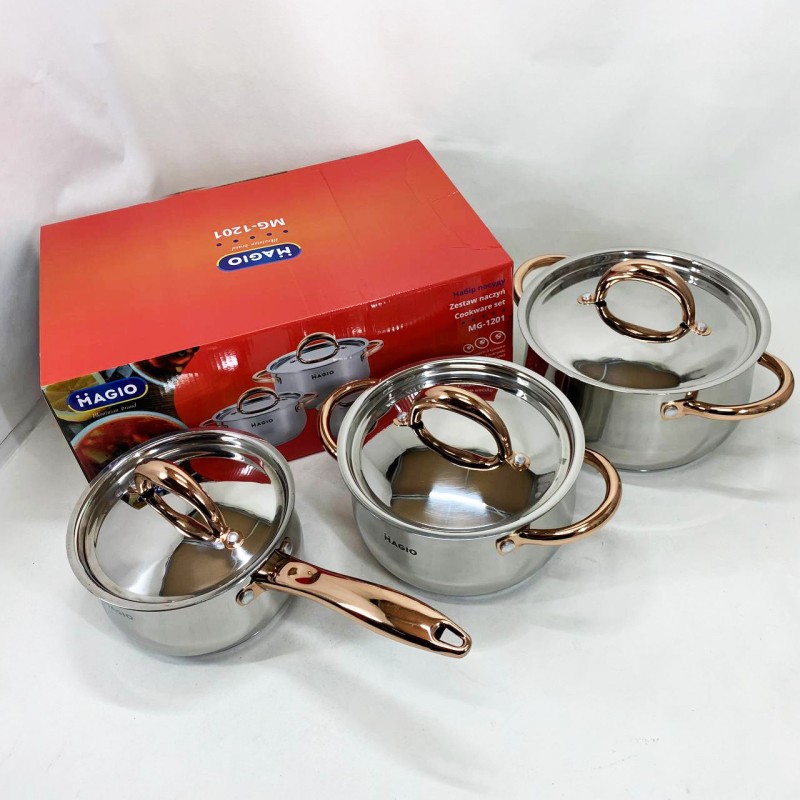 Пропонуємо вашій увазі комплект посуду, що включає дві каструлі та один ковш з трьома кришками, виконані з нержавіючої сталі. Ця модель створена для ефективного та зручного приготування різних страв, підходить для використання на різних типах плит. Надійність та довговічність матеріалів забезпечують збереження початкового вигляду навіть при інтенсивній експлуатації, а ретельно продумані технічні характеристики сприяють оптимальному розподілу тепла.