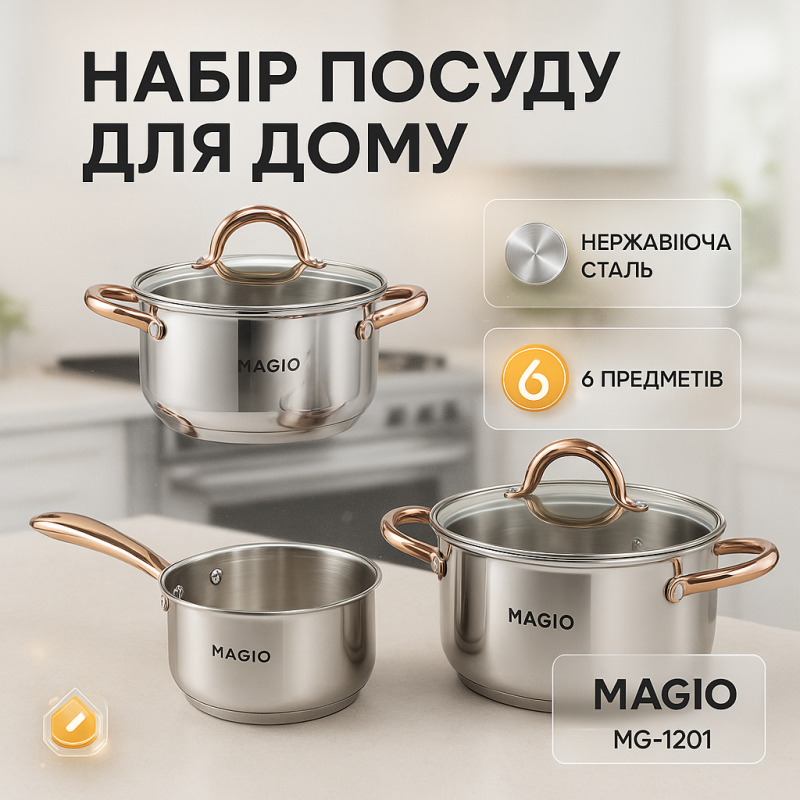 Набір посуду MAGIO MG-1201 можна замовити в інтернет-магазині Shtyrman. Перевіряйте модель, виробника, наявність і характеристики перед покупкою.
