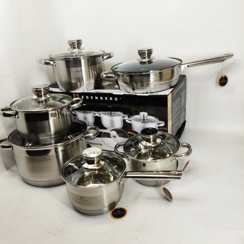 | Назва | Набір посуду з кришками Edenberg EB-4080 із нержавіючої сталі 12 предметів 2.1л-6.5л |