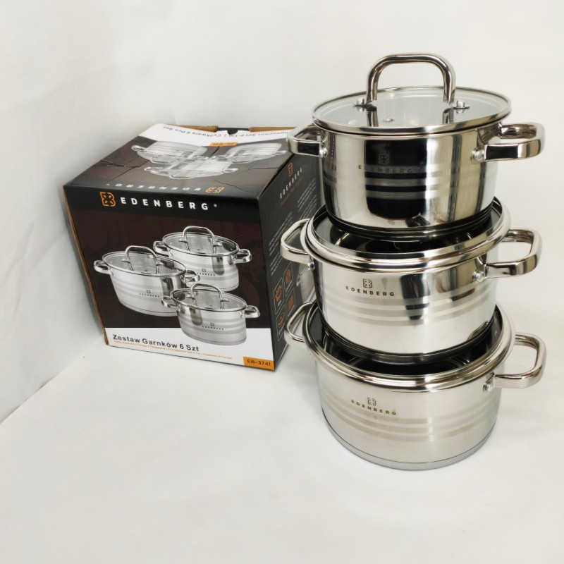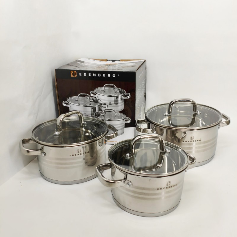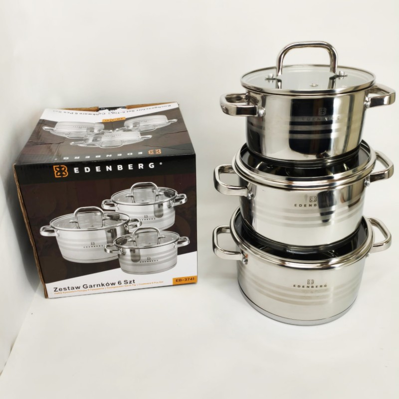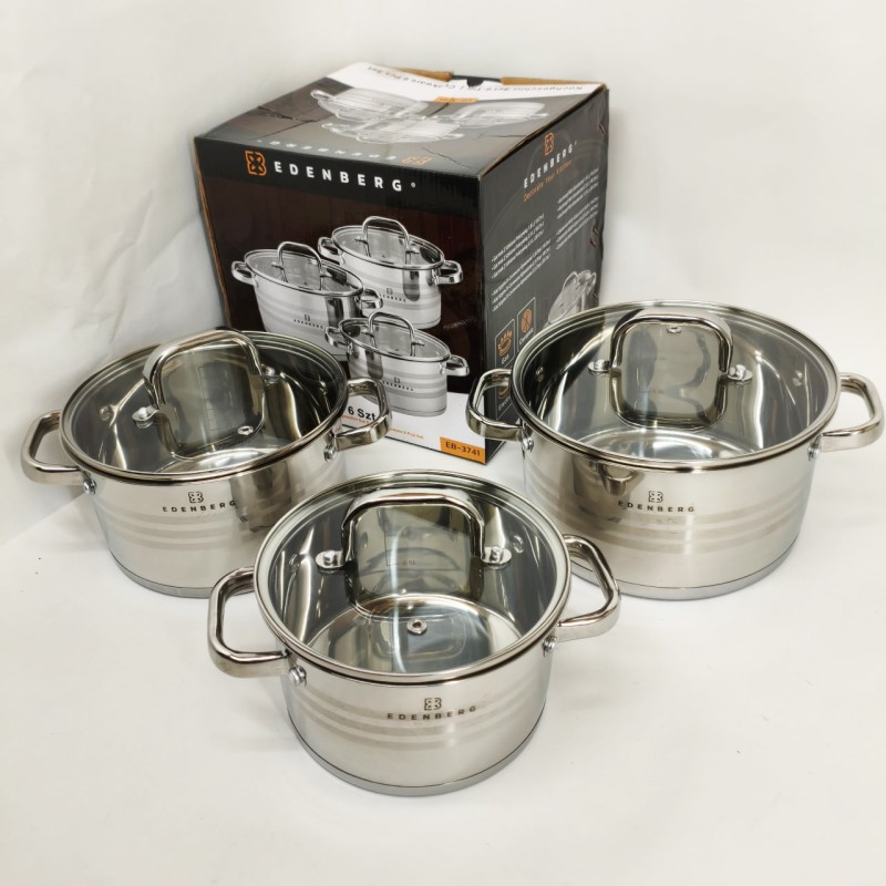 Набір посуду з нержавіючої сталі Edenberg EB-3741 зі скляними кришками 6 предметів можна замовити в інтернет-магазині Shtyrman. Перевіряйте модель, виробника, наявність і характеристики перед покупкою.