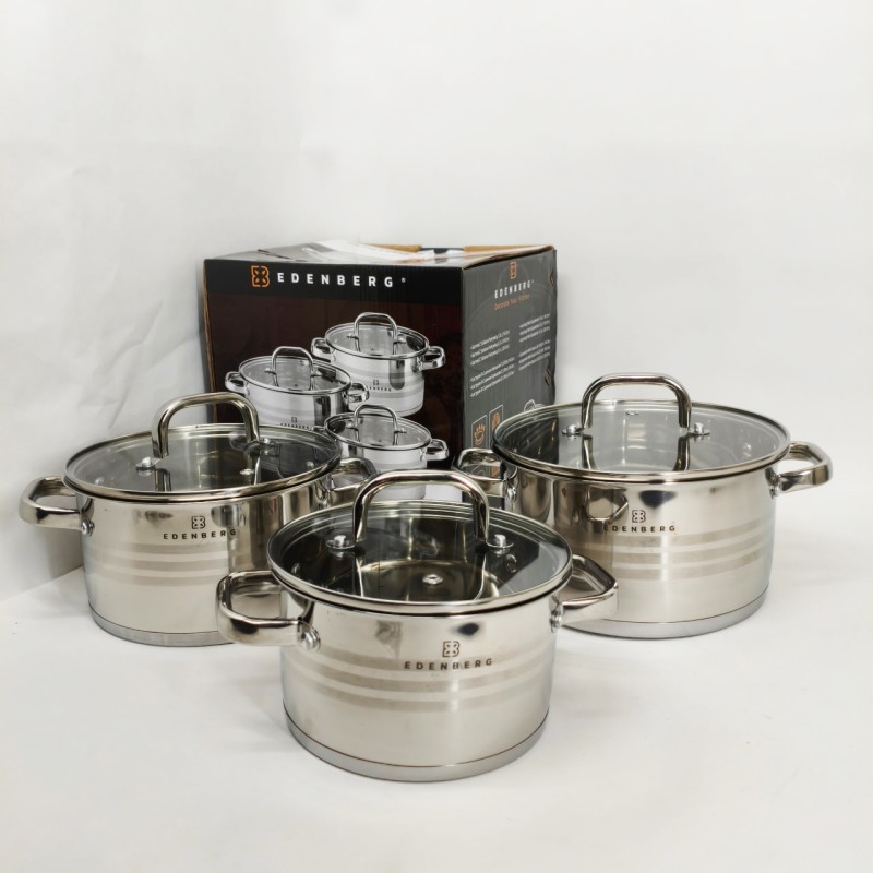 Edenberg EB-3741 — універсальний набір посуду, що поєднує в собі високу якість та сучасний дизайн. Каструлі виготовлені з екологічно чистої нержавіючої сталі, яка не впливає на смак страв та стійка до пошкоджень.