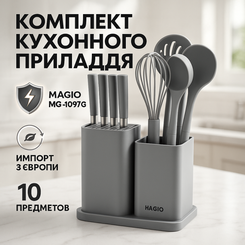Набір силіконових кухонних речей Magio MG-1097G набір ножів лопаток 12 предметів можна замовити в інтернет-магазині Shtyrman. Перевіряйте модель, виробника, наявність і характеристики перед покупкою.