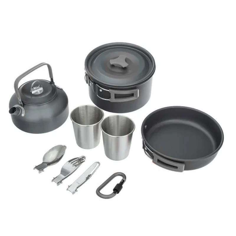 Набір туристичного посуду зі столовими приладами HALIN DS-308, Похідний посуд для пальників можна замовити в інтернет-магазині Shtyrman. Перевіряйте модель, виробника, наявність і характеристики перед покупкою.