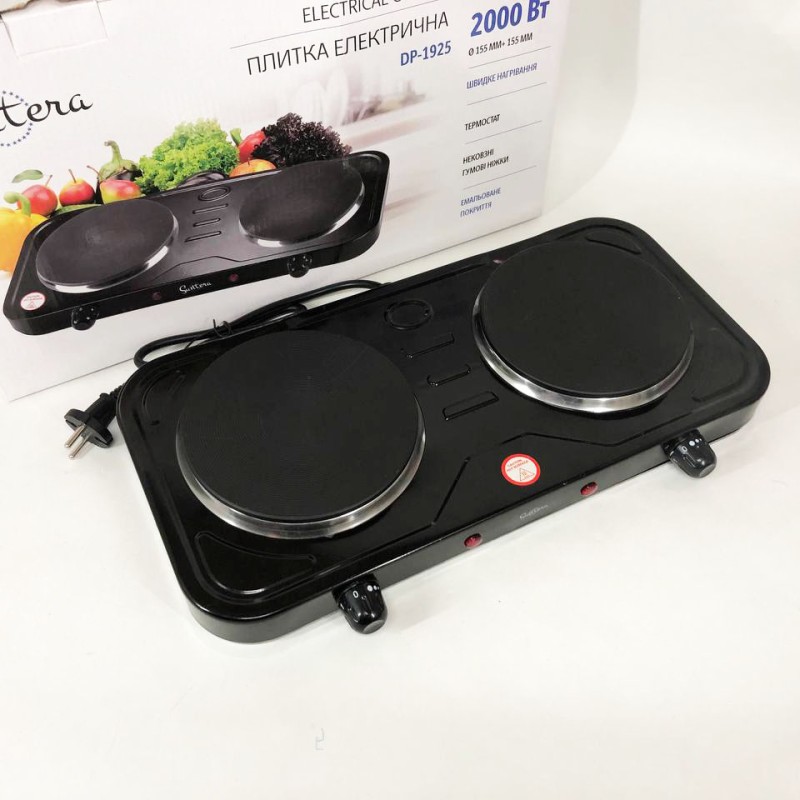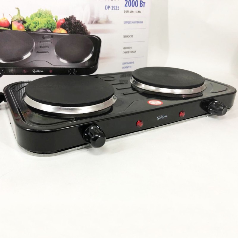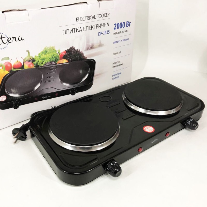 | Назва | Плита електрична Suntera DP-1925, подвійна електроплита, потужна настільна електроплита. Колір: чорний |