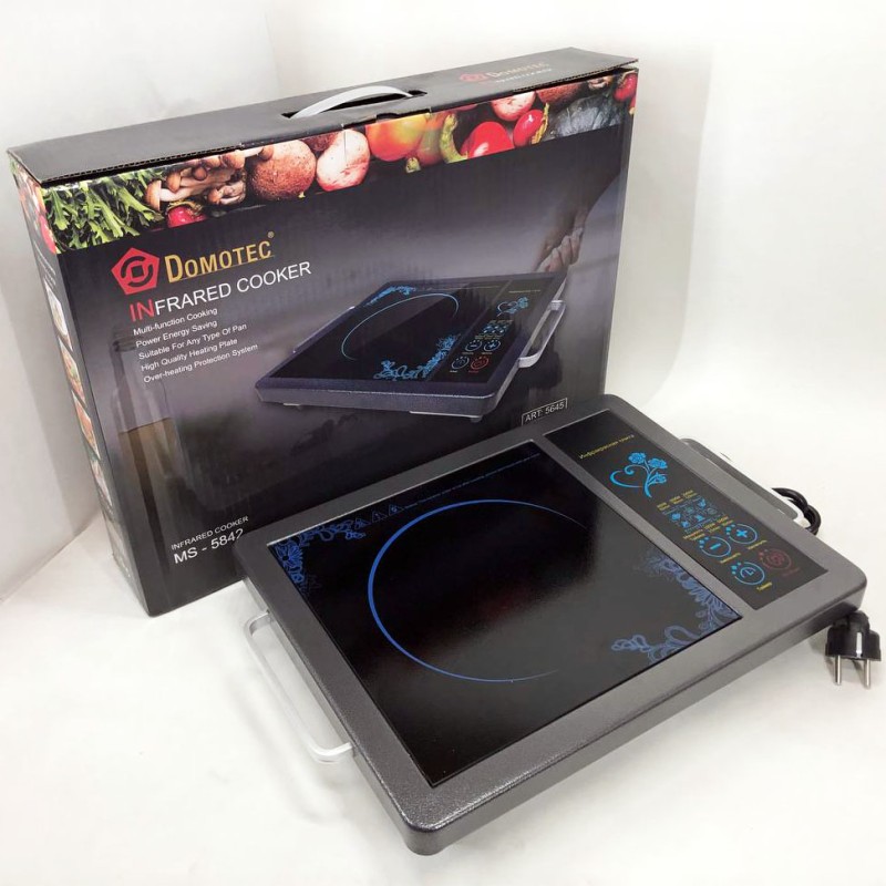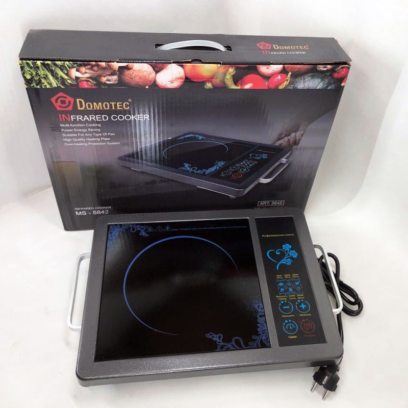 Серед безлічі кухонних побутових плит на ринку, виділяється інфрачервона електроплита Domotec MS 5842 з потужністю 2000 Вт та практичністю у використанні. Принцип роботи електроплити дуже простий. Він полягає в тому, що інфрачервона електроплита нагріває свою склокерамічну поверхню за допомогою інфрачервоного випромінювання. На верхній панелі плити знаходяться сенсорні кнопки, які забезпечують легке керування.