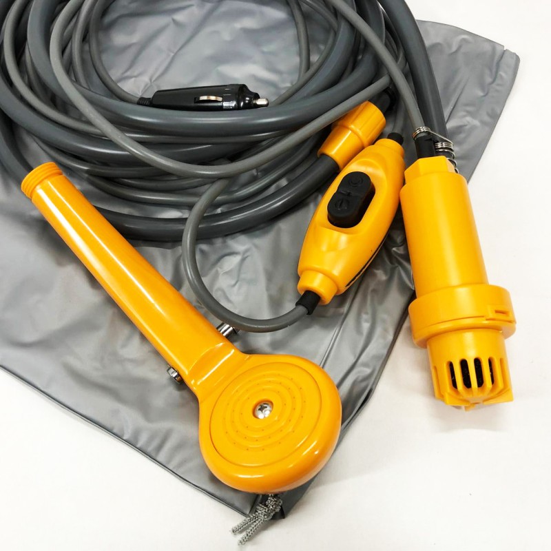 У поході, на рибалці, на дачі чи екстремальних умовах ви зможете згадувати про цивілізацію! Портативний переносний душ призначений для таких умов, коли поруч немає ні водопроводу, ні мережі 220 В. Електронасос портативного душу для автомобіля підключається до мережі прикурювача автомобіля. автомобіля або акумулятора або до блока живлення з напругою 12В