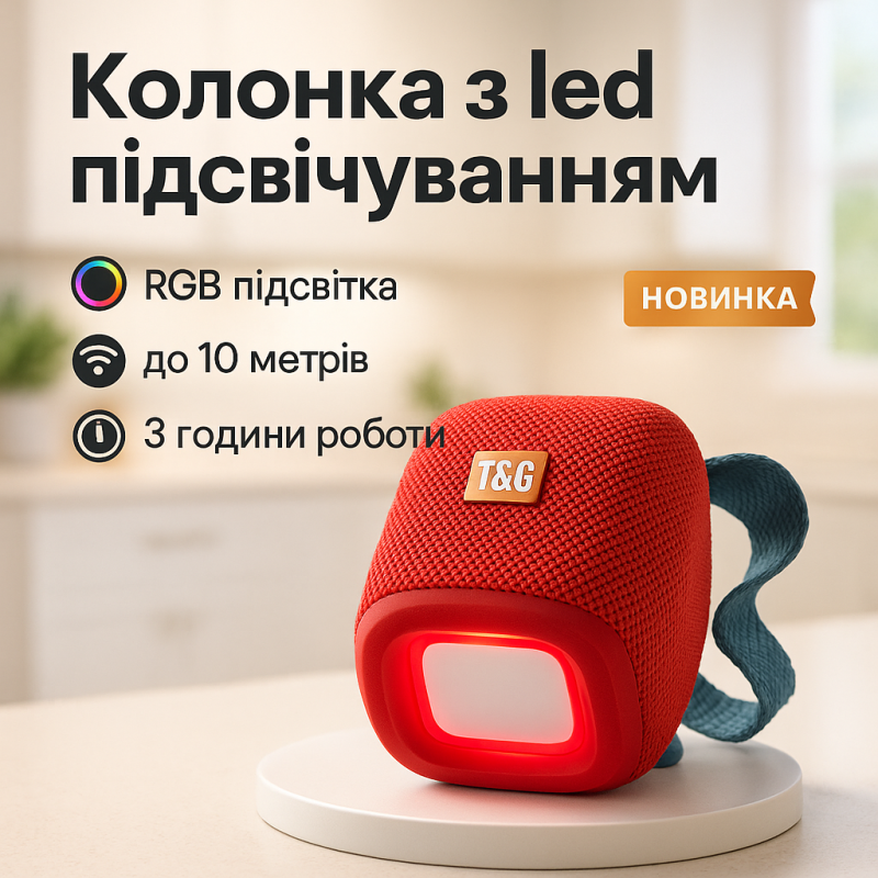 | Назва | Портативная Bluetooth колонка TG339 5W с RGB подсветкой, Громкая блютуз колонка. Цвет: красный |