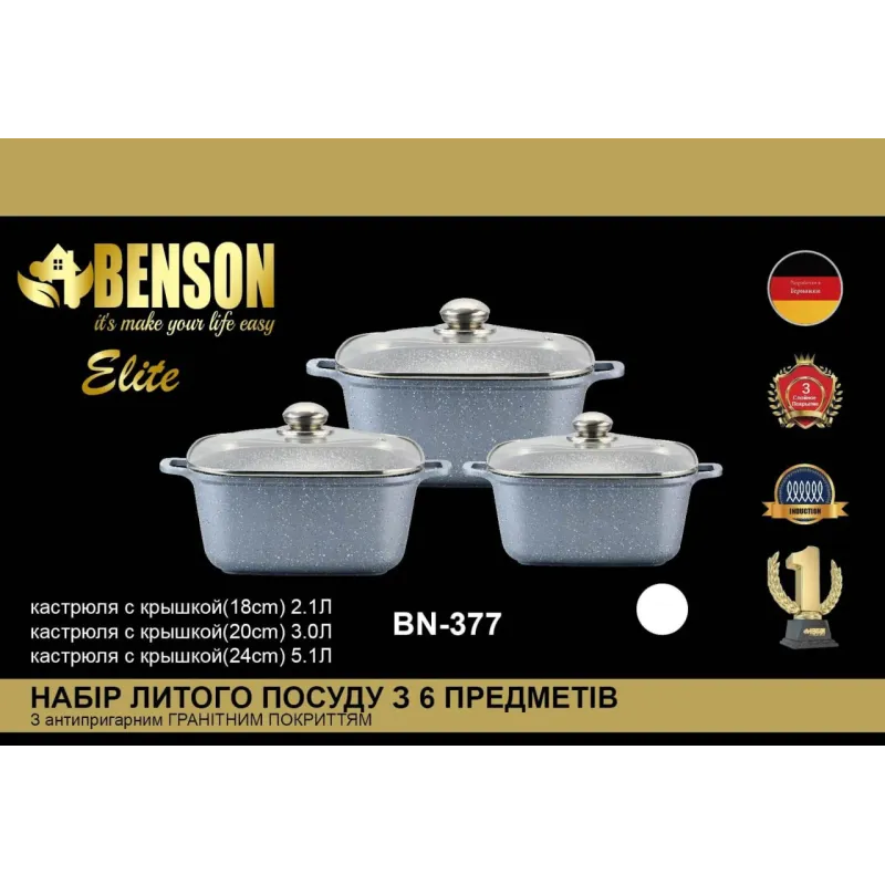 Набір каструль з гранітним покриттям 6 предметів BN-377 — ідеальне рішення для вашої кухні