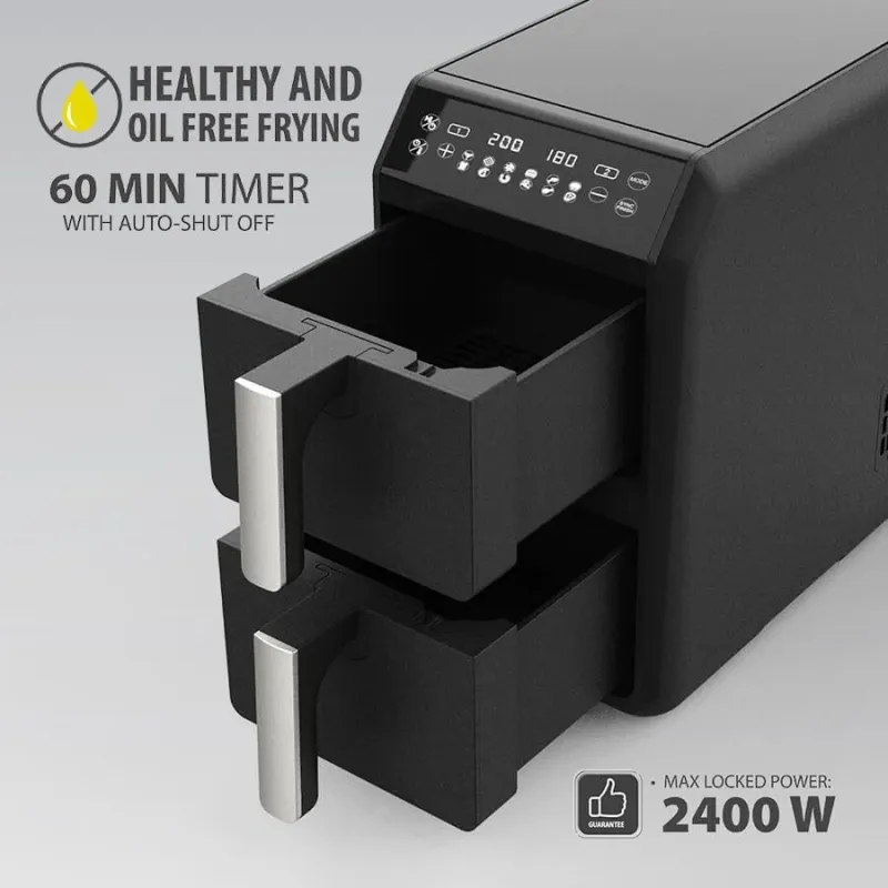 - 🌀 Система швидкої циркуляції гарячого повітря для рівномірного смаження