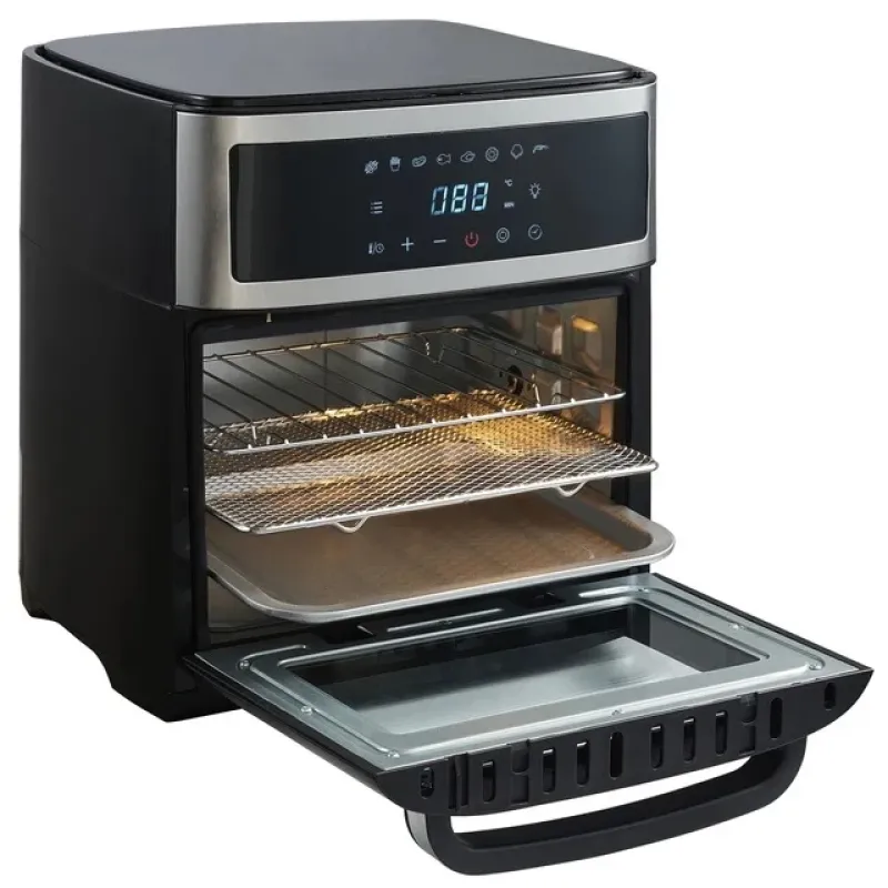 Аэрофритюрница имеет температурный диапазон от 40 до 200°C, благодаря которому блюда можно не только запекать, но также нагревать или поддерживать в тепле. Вращающаяся корзина для жарки облегчает приготовление небольших продуктов: чипсов, креветок, овощей. Вместимость аэрогриль составляет целых 13 литров, поэтому вы сразу сможете приготовить обед на всю семью или испечь любимую закуску. Устройство оснащено четким белым светодиодным дисплеем и сенсорной панелью, которая позволяет легко выбрать предпочтительную программу выпечки и измерить время.