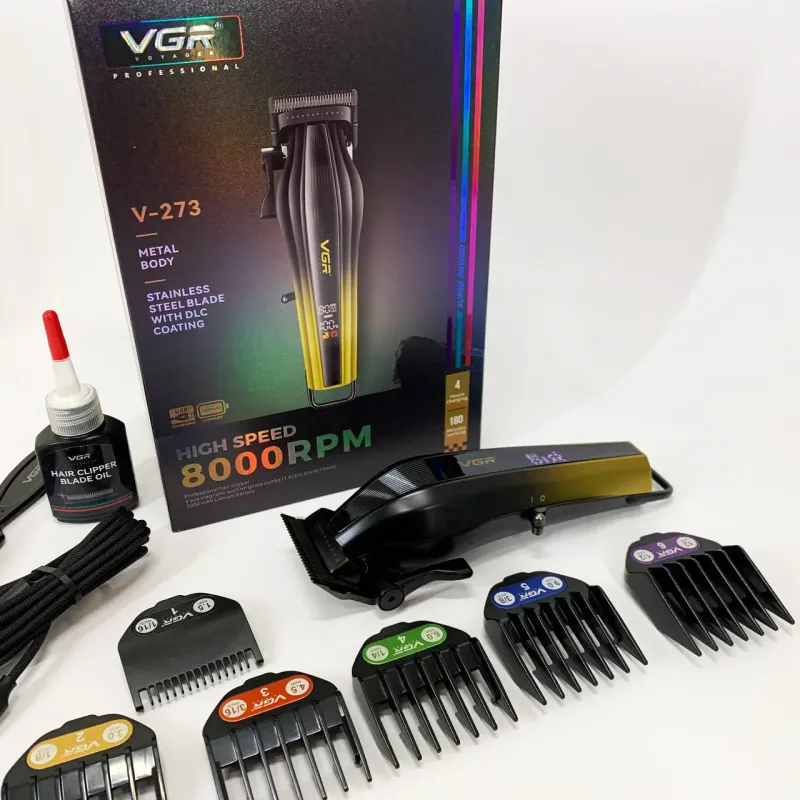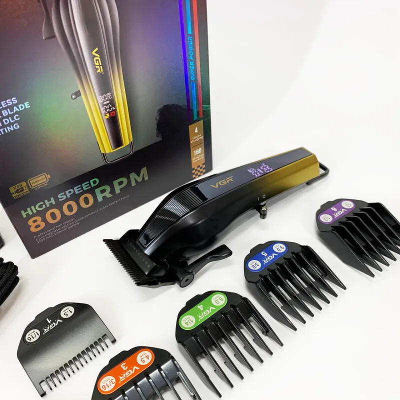 В комплект входят 6 сменных насадок, которые позволяют точно регулировать длину стрижки и адаптировать машинку под различные стили и задачи. Интуитивно понятный LED-дисплей отображает текущий уровень заряда, режим работы и напоминание о необходимости смазки, что обеспечивает полный контроль и удобство в использовании. Беспроводной формат даёт полную свободу движений, а высокая производительность и надёжность делают VGR V-273 GREEN универсальным инструментом для любого пользователя.
