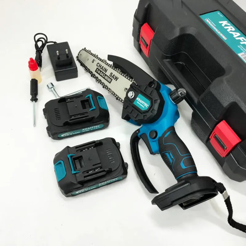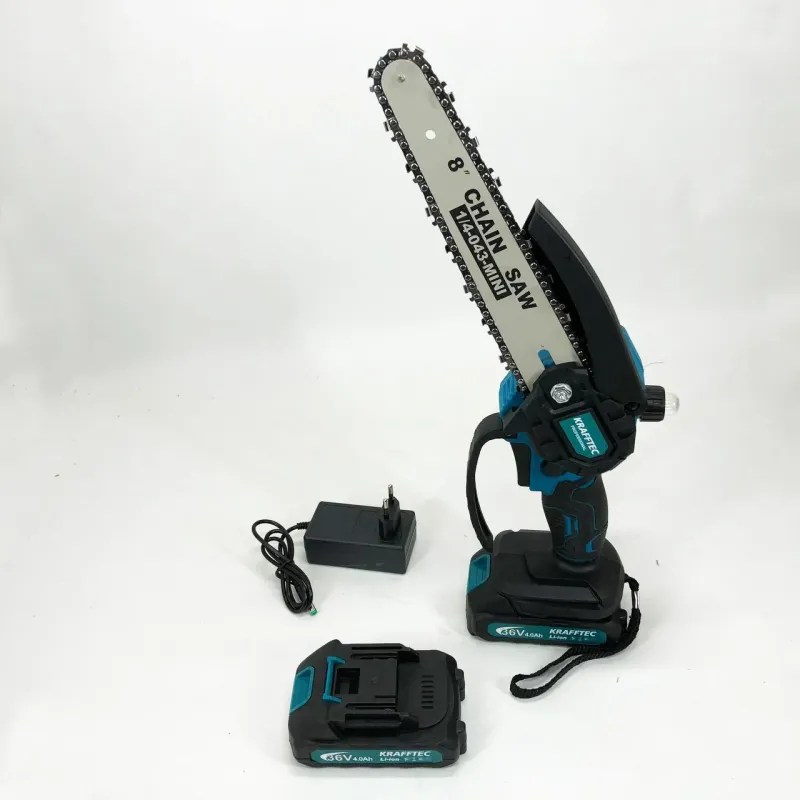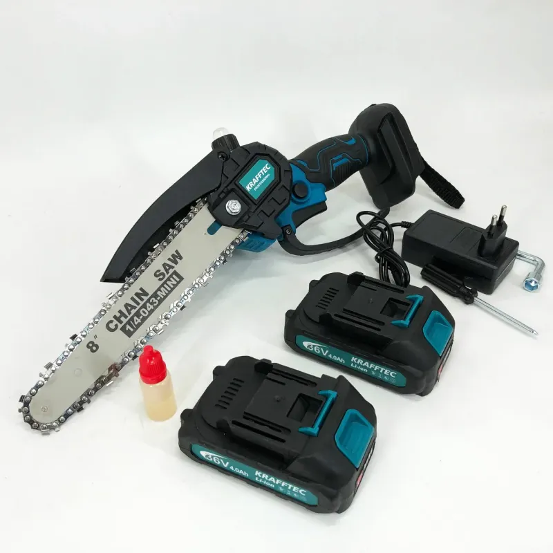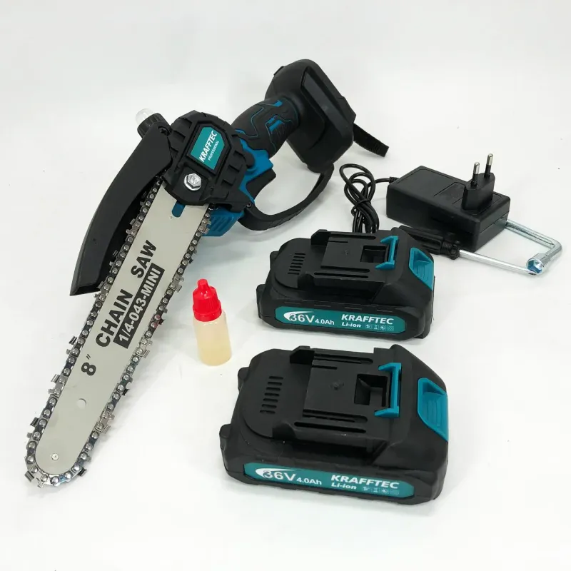 Аккумуляторная цепная мини пила 20 см в кейсе Krafftec (36V 4 Ач) + 2 аккумулятор и индикатором заряда
