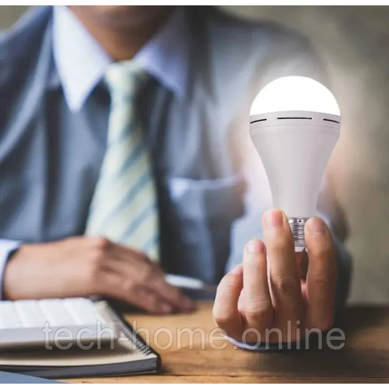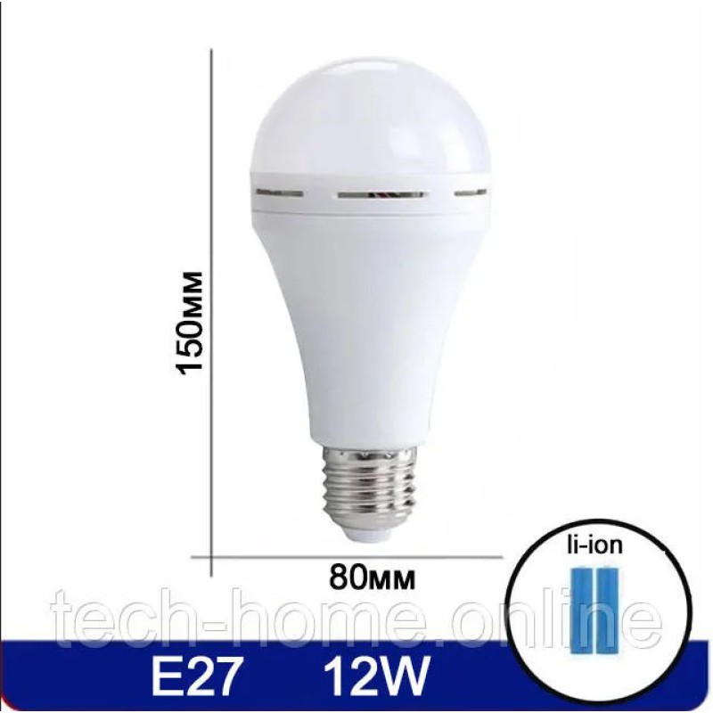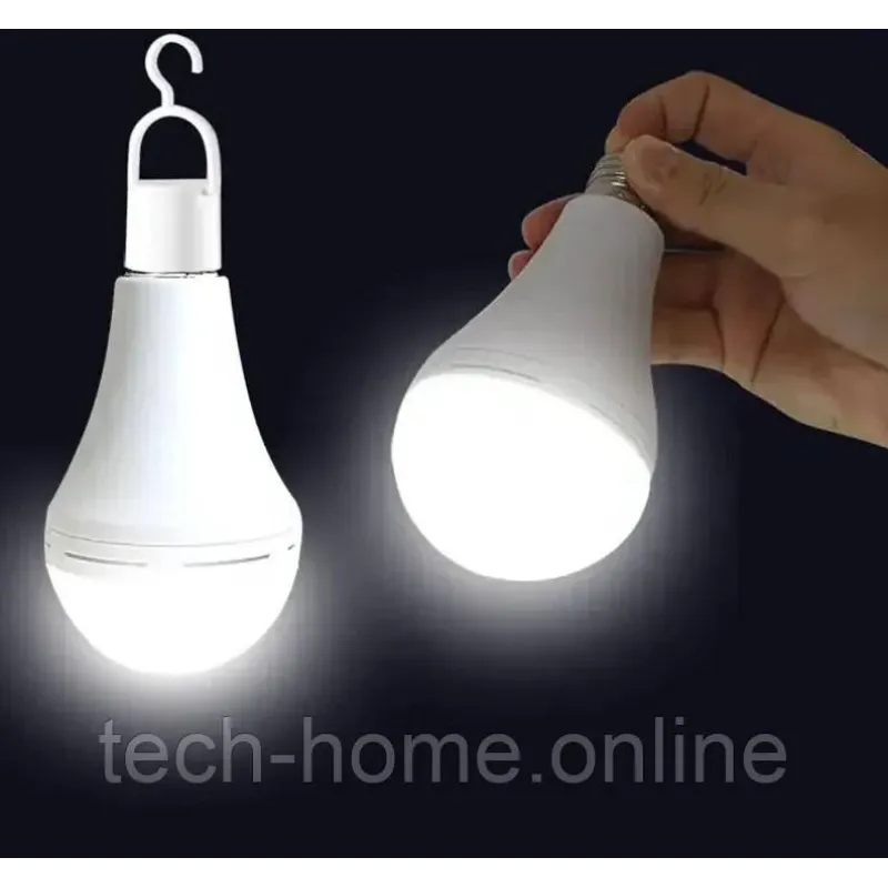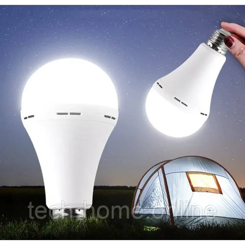 Потужна LED-лампа з вбудованим Li-Ion акумулятором працює автономно до 8 годин. Цоколь E27 дозволяє використовувати її в звичайному патроні, а підвіска та заглушка — підвісити або встановити окремо. Швидка зарядка та яскравість 12W замінюють стандартну лампу 100W.
