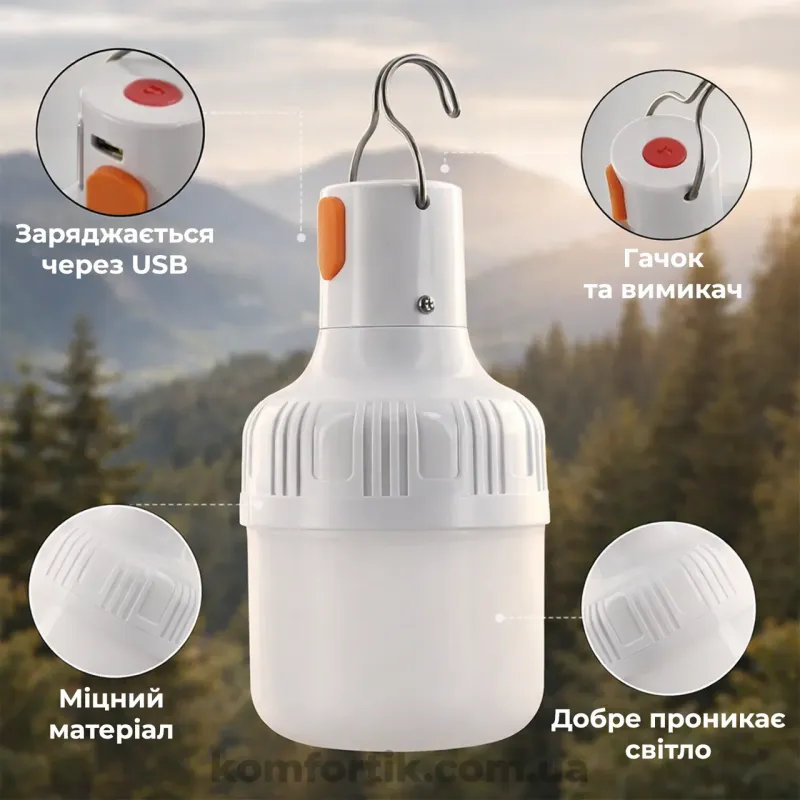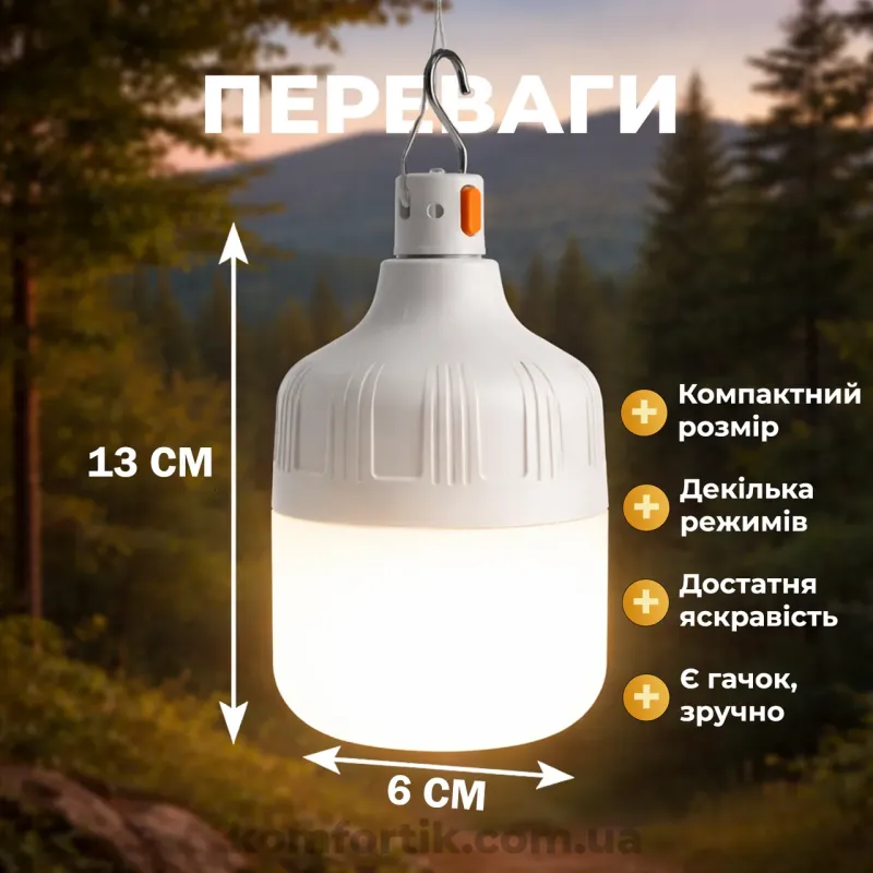 Теги: акумуляторна лампа, кемпінгова лампа, ліхтар для походів, аварійне освітлення, LED лампа 60W, лампа на гачку, туристичний ліхтар