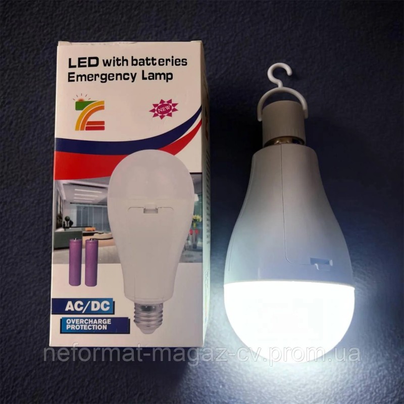 Теги: акумуляторна лампа, LED лампа з гачком, автономне освітлення, лампа Е27, світлодіодна лампа 20Вт, лампа для гаража, переносна лампа