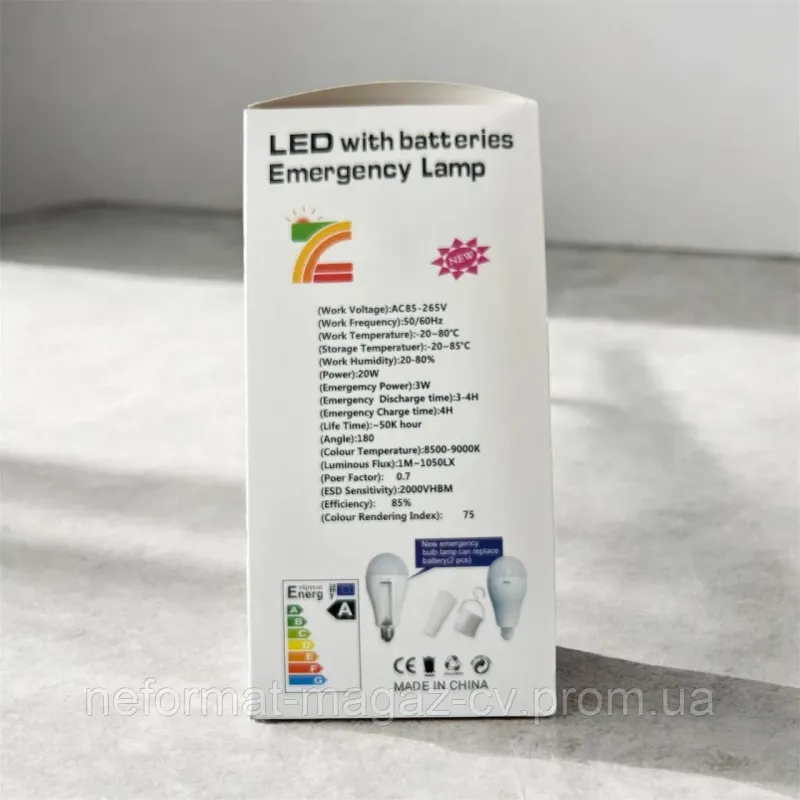 Вбудований акумулятор дозволяє лампі працювати автономно до 6 годин. Вкрутіть її в звичайний патрон Е27 або підвісьте за допомогою гачка в потрібному місці. Потужність 20Вт забезпечує яскраве світло, еквівалентне 150Вт лампі розжарювання. Зарядка від мережі 220В займає 4-5 годин.
