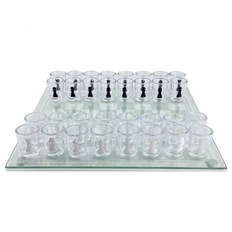 Алко Пьяные шахматы с рюмками и стеклянной доской 24х24 см. Алкогольные шахматы рюмки, настольная игра 32 рюмки