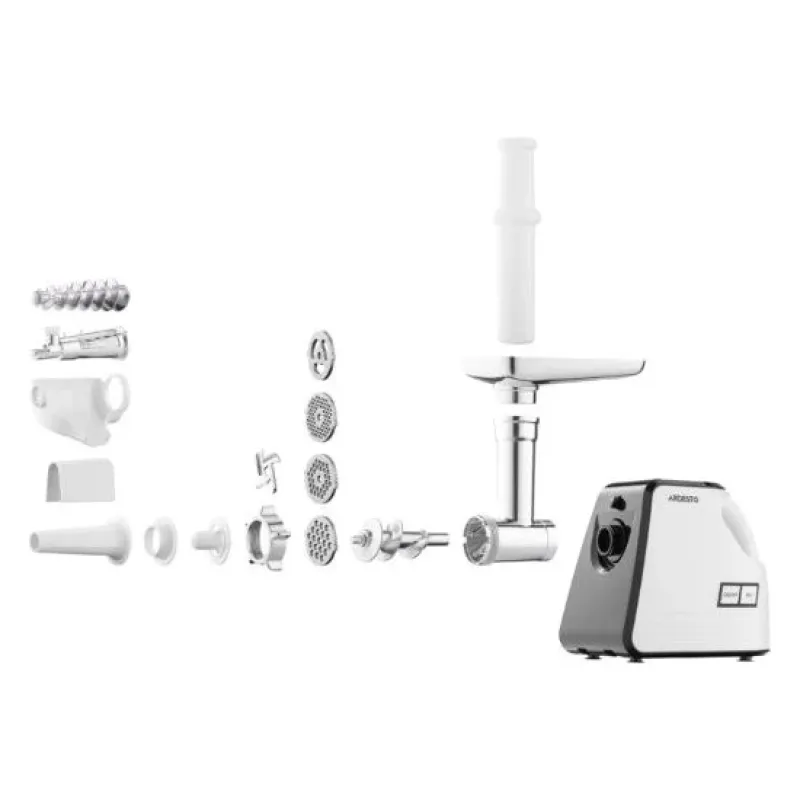 ARDESTO Мясорубка, 2300Вт, призв. -2.2кг/мин, 4 решетки + для колбас., кеббе, насадка для томатов, пластик, бело-черный