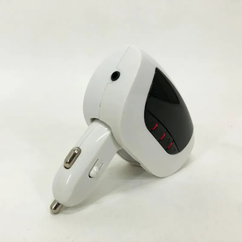 FM модулятор автомобильный, или как его по другому ещё называют FM трансмиттер - это небольшое устройство подключаемое к прикуривателю автомобиля и передающее аудиосигнал (музыку) в FM диапазоне на автомобильный радиоприёмник автомагнитолы. В качестве источника музыки к ФМ модулятору подключают флешку с записанной на ней с компьютера MP3 музыкой. После этого, настроив fm модулятор и приёмник автомагнитолы на одну частоту, можно слушать качественный звук через автомобильные колонки. Кроме флешки, через аудиовход FM модулятора можно подключить любой источник звука имеющий аудио выход (MP3, CD-плеер, iPod, КПК).