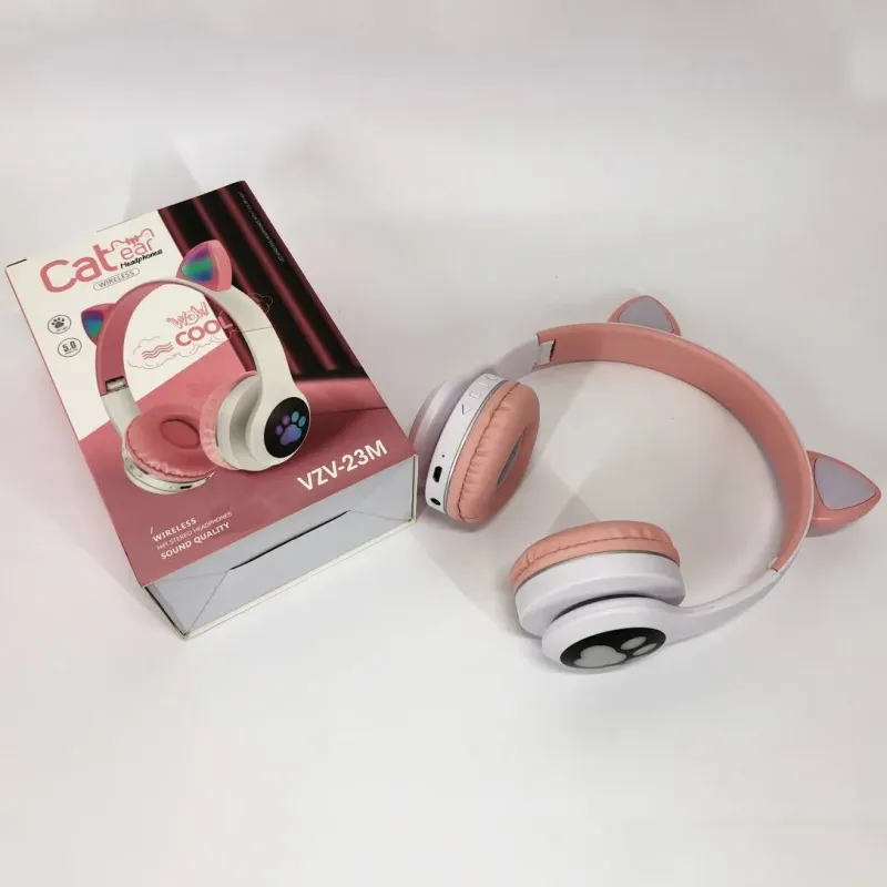 Беспроводные наушники с кошачьими ушками и RGB подсветкой Cat VZV 23M. Цвет: розовый