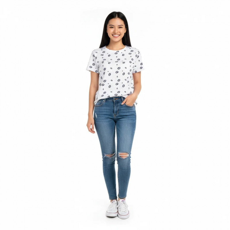 Як Біла футболка з романтичним принтом Губи та Серця вирішує це завдання