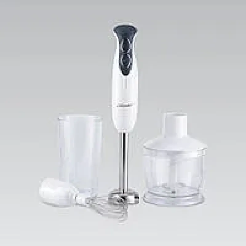 Блендер MAESTRO MR-562 має стильний, сучасний дизайн, дуже простий та зручний у використанні, а також у складанні. Ергономічна форма ручки забезпечить надійне, без ковзання, захоплення. Широкий асортимент насадок дозволить швидко подрібнити, натерти або нашаткувати практично будь-які продукти, а також приготувати пюре із фруктів чи овочів, збити білки або приготувати домашній майонез. Модель додатково комплектується прозорою пластиковою чашею з можливістю встановлення подрібнених ножів, а також спеціальних знімних насадок для натирання шатківниці. Оскільки вона щільно закривається спеціальною кришкою, що запобігає розбризкуванню вмісту, можете турбуватися чистоту кухонних поверхонь і стін. Особливості Сучасний ергономічний дизайн Зручність та простота у використанні | чистці У комплект також входить мірна склянка. Кількість швидкостей: 2 220-240 | ~ | Гц, 300 Вт Характеристики Сфера застосування: побутовий Тип: універсальний блендер Потужність: 300 Вт Кількість швидкостей: 2 Додаткові характеристики: імпульсний режим Насадки | аксесуари: віночок, подрібнювач Матеріал ніжки блендера: метал Матеріал чаші: пластик Об’єм чаші: 0.6 л Об’єм додаткової чаші (склянки): 600 мл Тип живлення: від мережі Колір білий