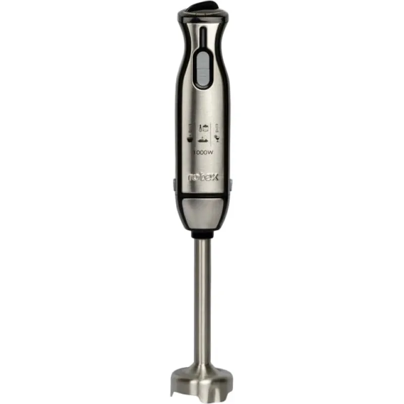 Блендер Rotex RTB805-B 1000Вт За допомогою металевої ніжки є можливість (подрібнити харчування для діток, сирні десерти, збити олію, майонез…), віночком збити креми, омлет, насадкою для пюре, приготувати картопляні пюре. …). Блендер має дві швидкості з плавним регулятором на корпусі. Потужність, Вт 800 Тип Занурювальний Насадки Віночок для збивання Гарантія 12 місяців
