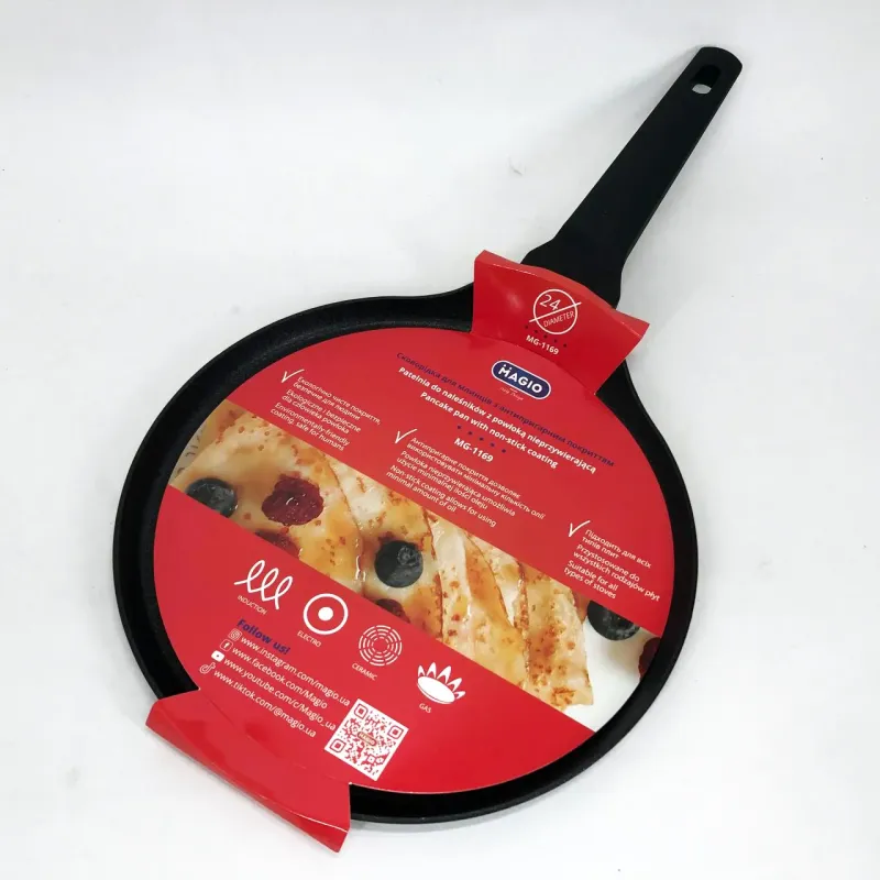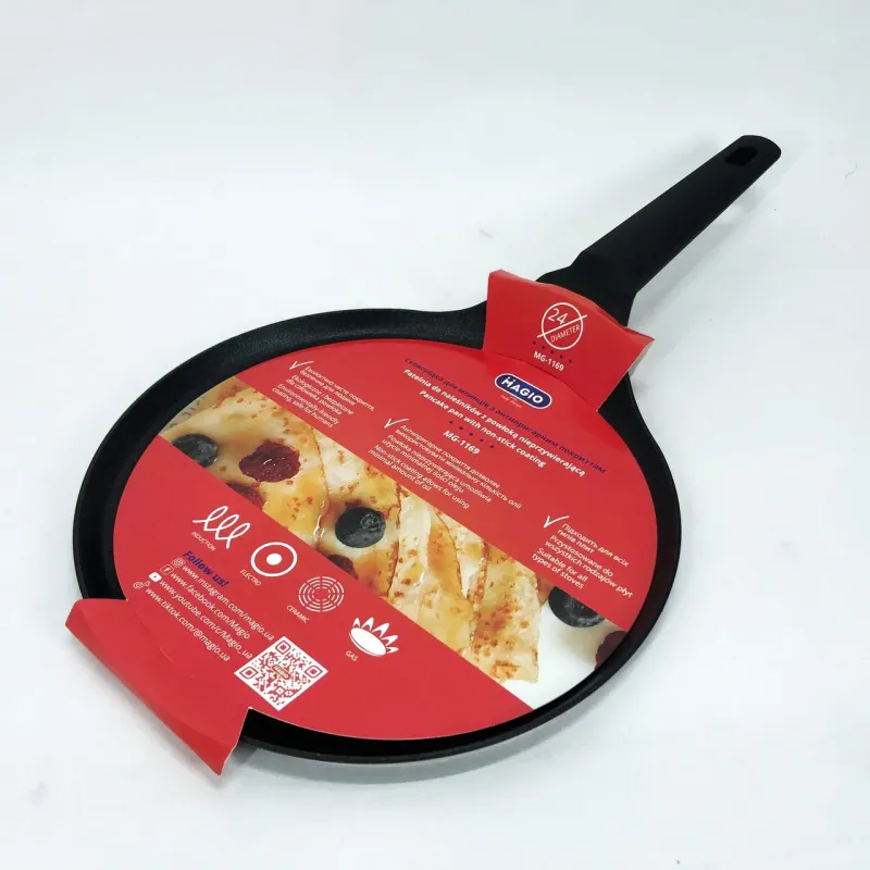Сковорода Magio MG-1169 станет универсальным помощником на кухне для тех, кто ценит качество и удобство. Она идеально подходит для выпекания блинчиков, оладий, тонких лепешек и других блюд, требующих деликатного теплового режима и антипригарного эффекта. Благодаря совместимости с разными типами плит ее можно использовать в домашних и профессиональных условиях, обеспечивая превосходные результаты при любых условиях.
