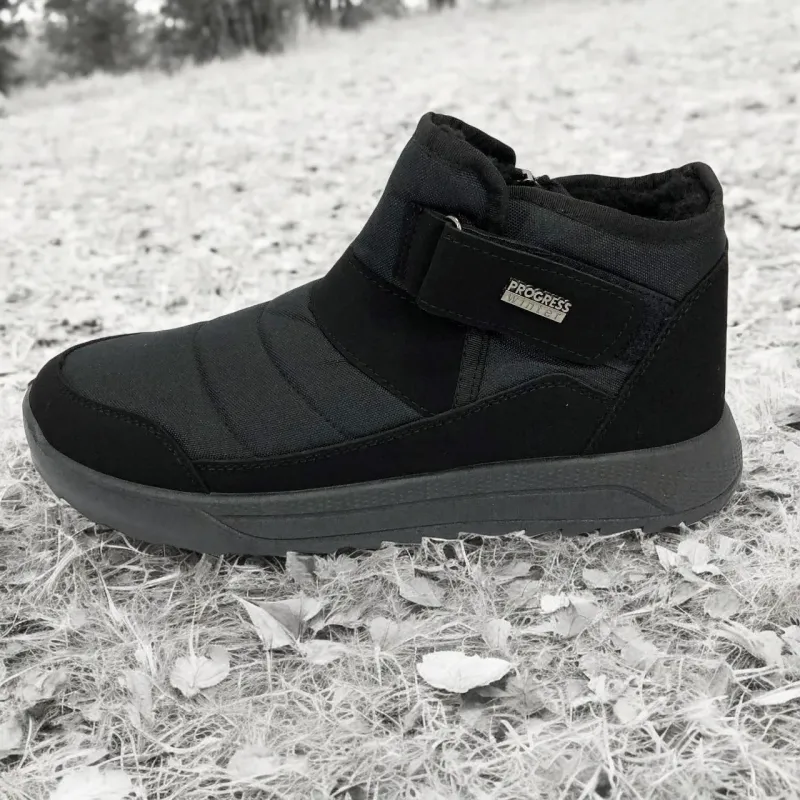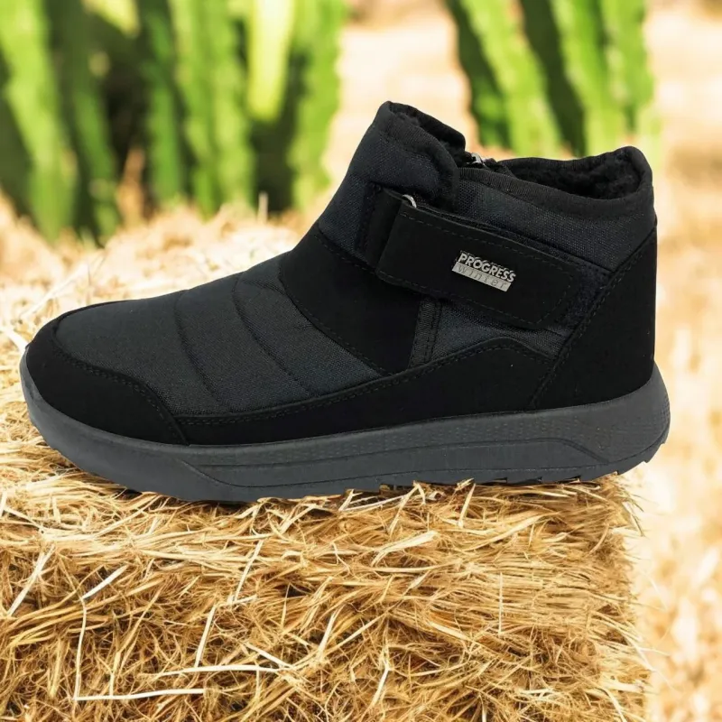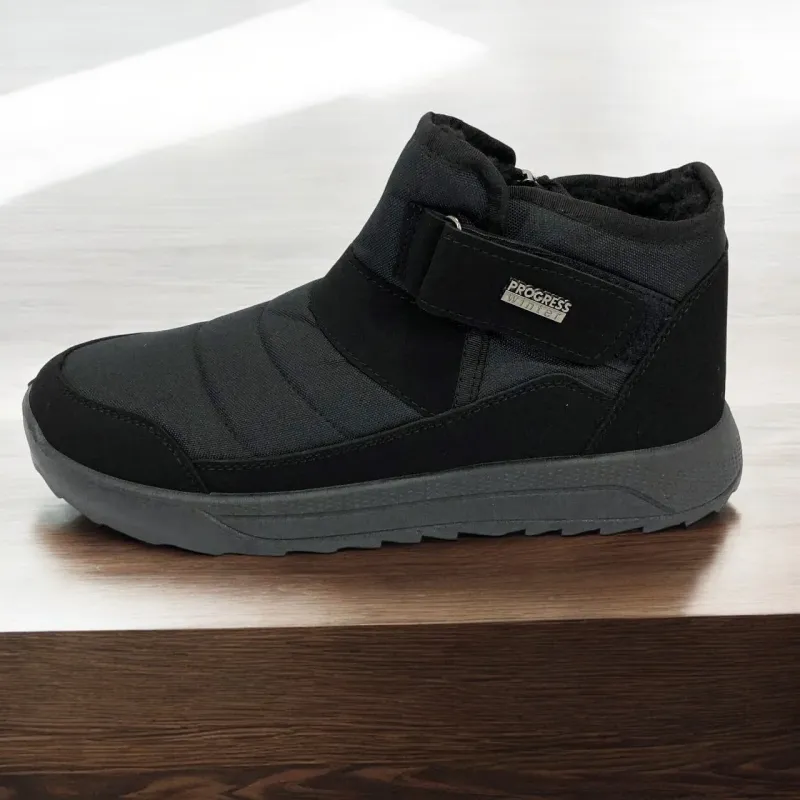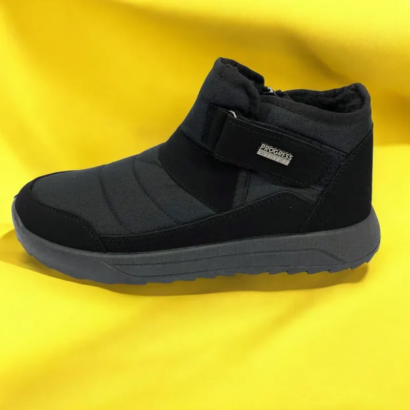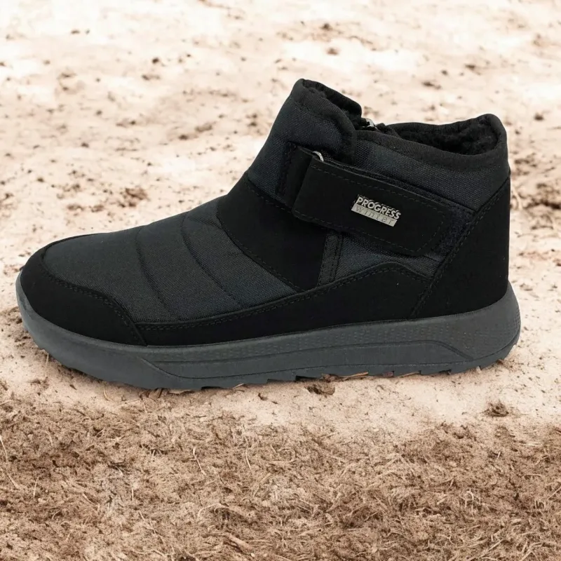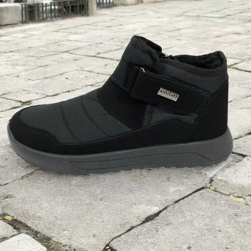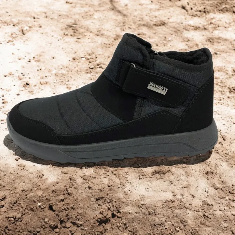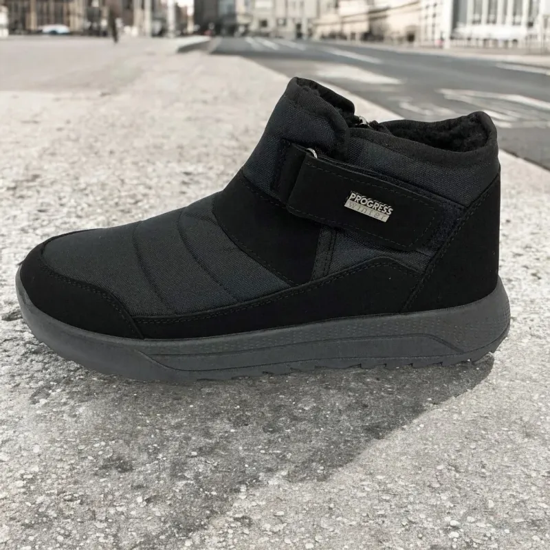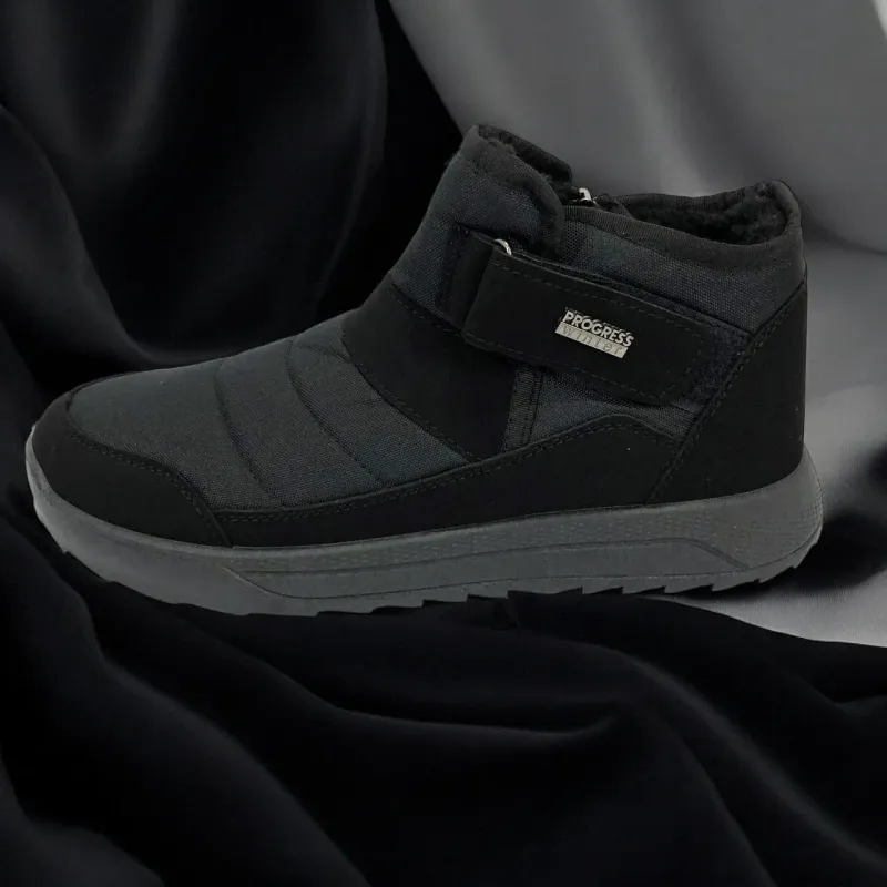 Модель имеет сдержанный современный дизайн в классическом черном цвете, который подходит любому стилю одежды. Эргономичная форма подошвы с легким рельефом гарантирует комфорт при ходьбе и хорошее сцепление с поверхностью. Такие ботинки подходят как для городских условий, так и для прогулок на свежем воздухе в прохладное время года.
