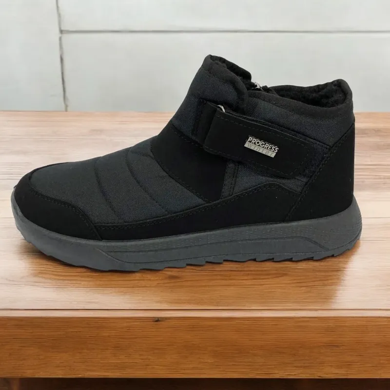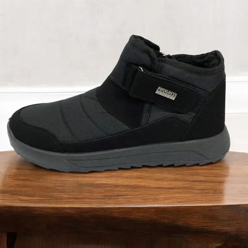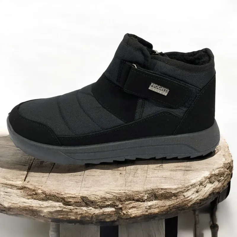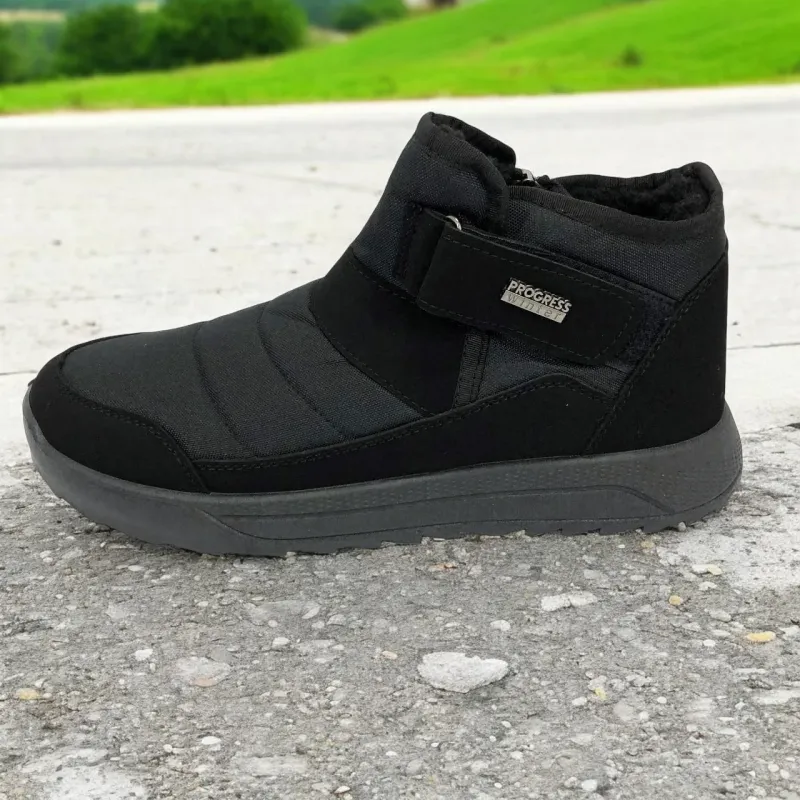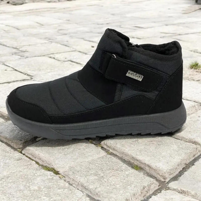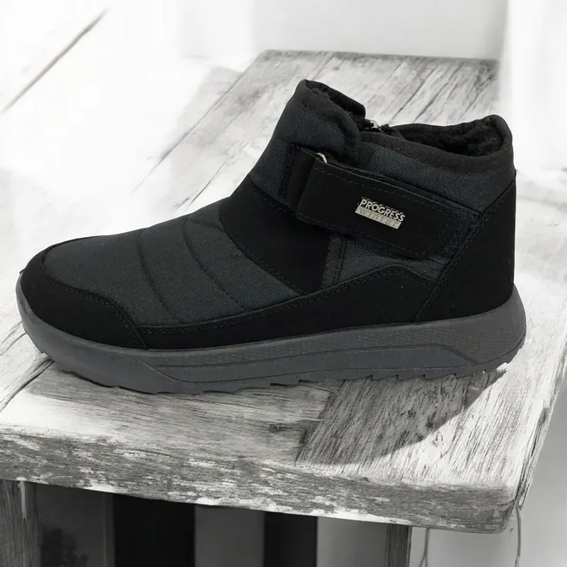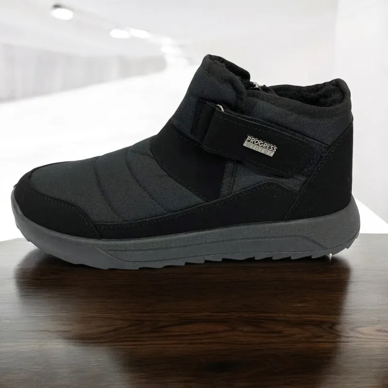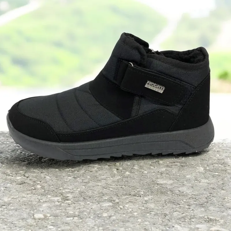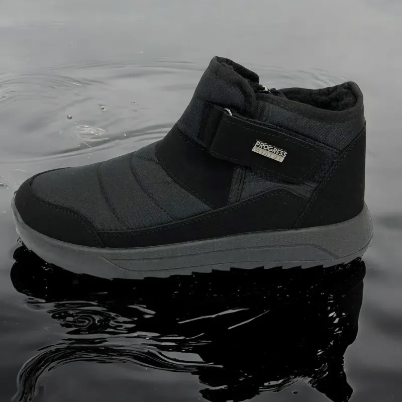 Модель имеет сдержанный современный дизайн в классическом черном цвете, который подходит любому стилю одежды. Эргономичная форма подошвы с легким рельефом гарантирует комфорт при ходьбе и хорошее сцепление с поверхностью. Такие ботинки подходят как для городских условий, так и для прогулок на свежем воздухе в прохладное время года.