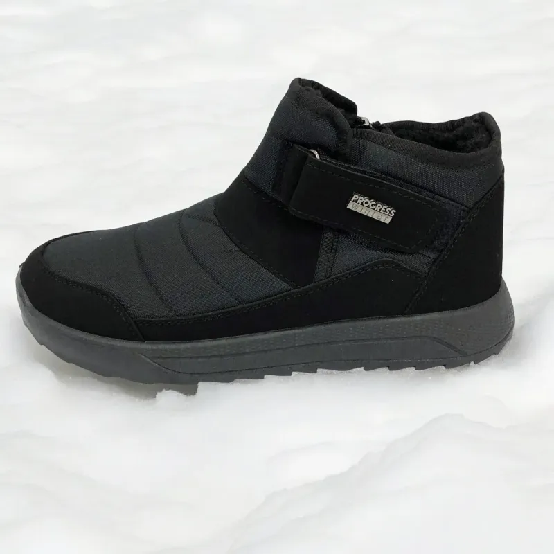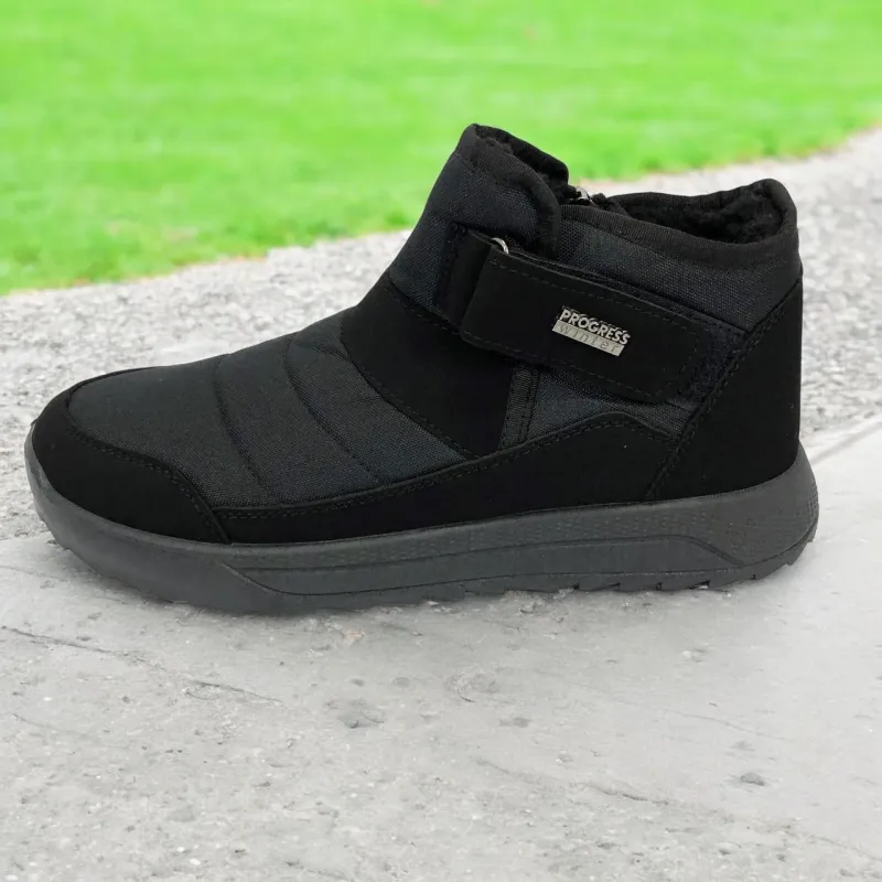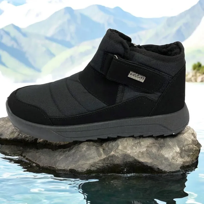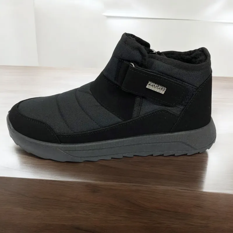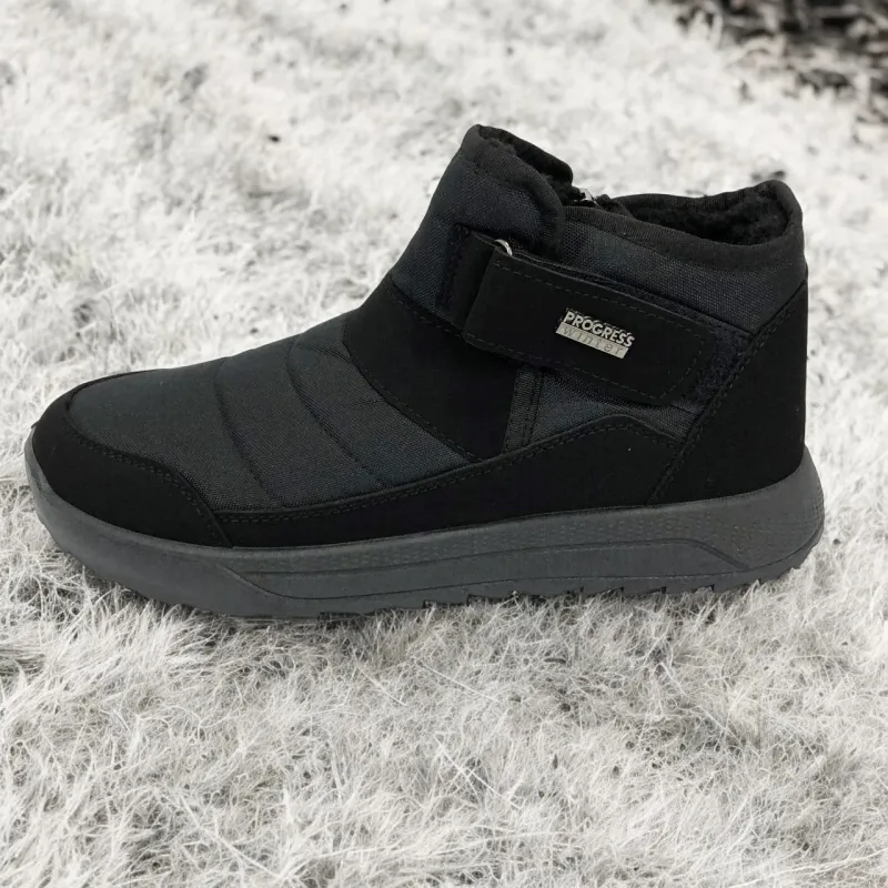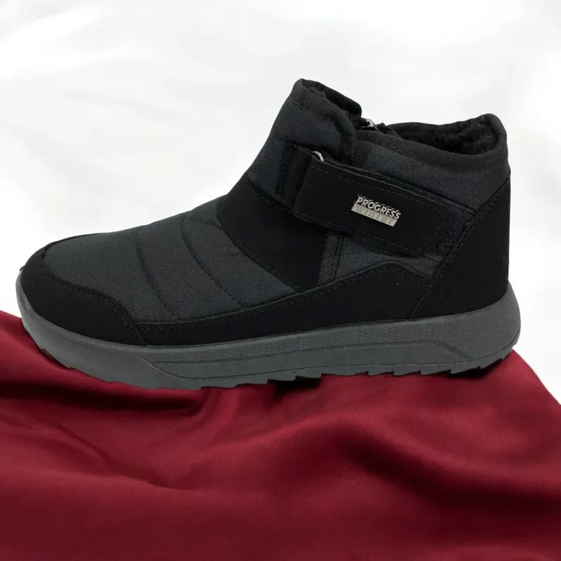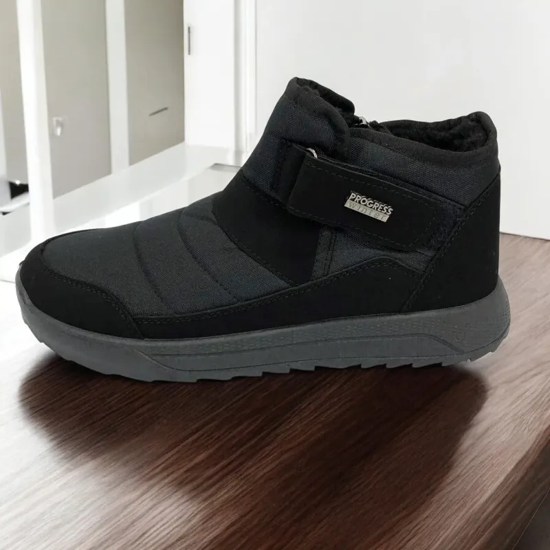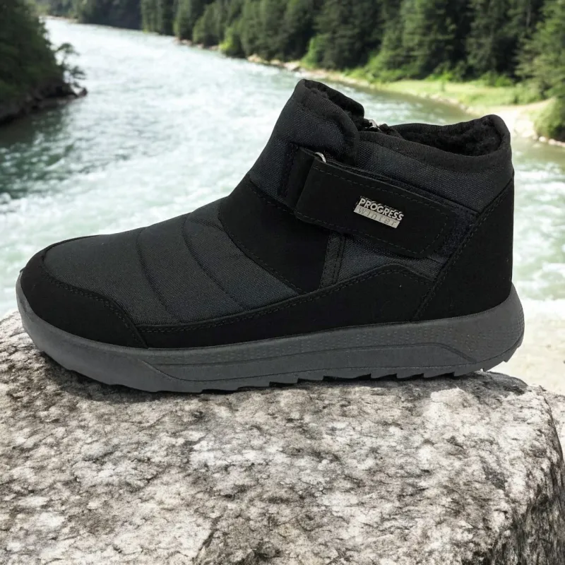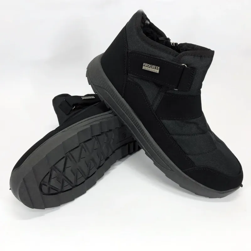 Модель имеет сдержанный современный дизайн в классическом черном цвете, который подходит любому стилю одежды. Эргономичная форма подошвы с легким рельефом гарантирует комфорт при ходьбе и хорошее сцепление с поверхностью. Такие ботинки подходят как для городских условий, так и для прогулок на свежем воздухе в прохладное время года.