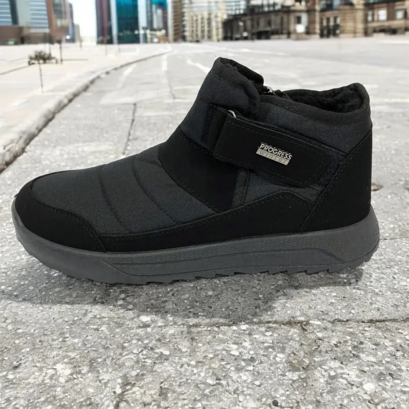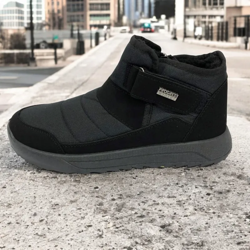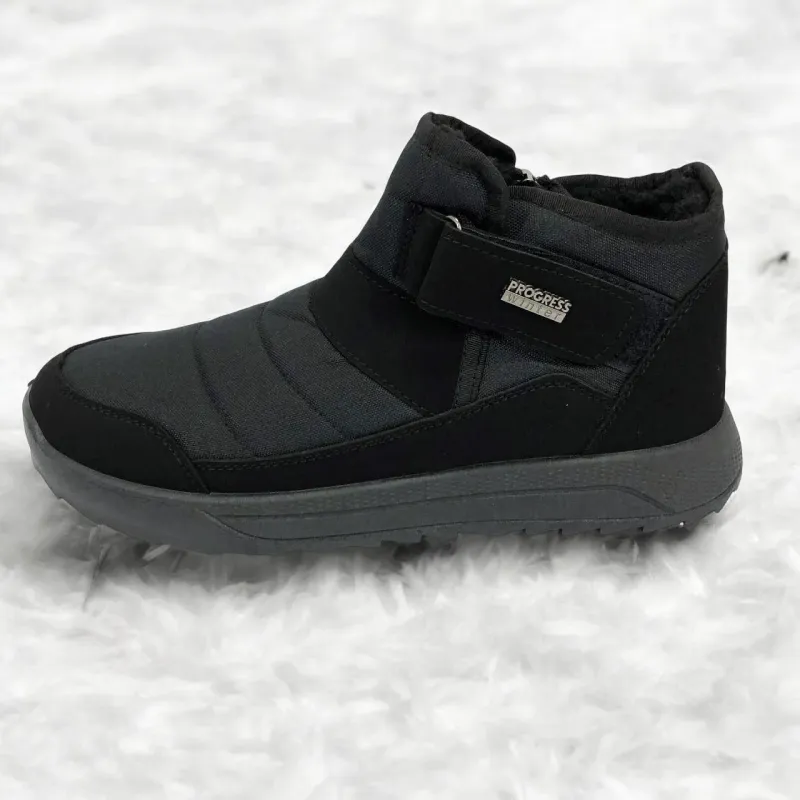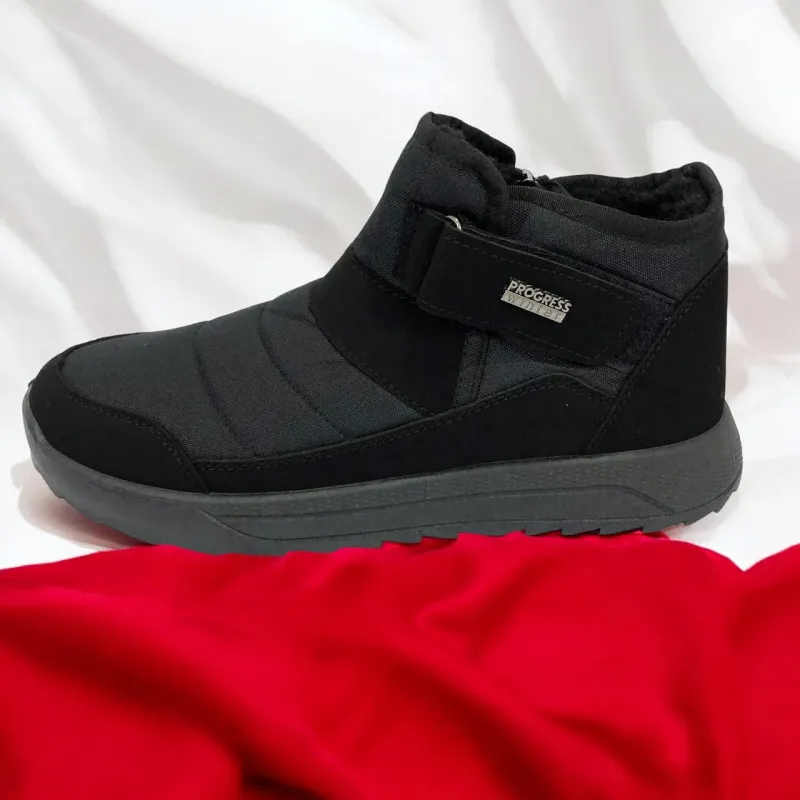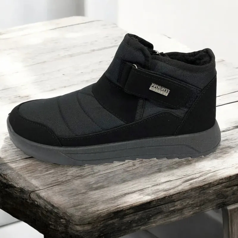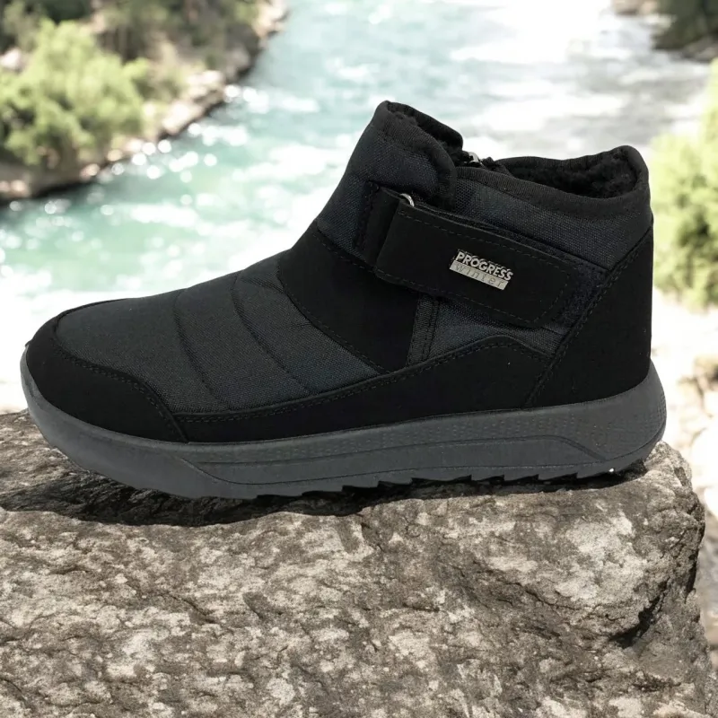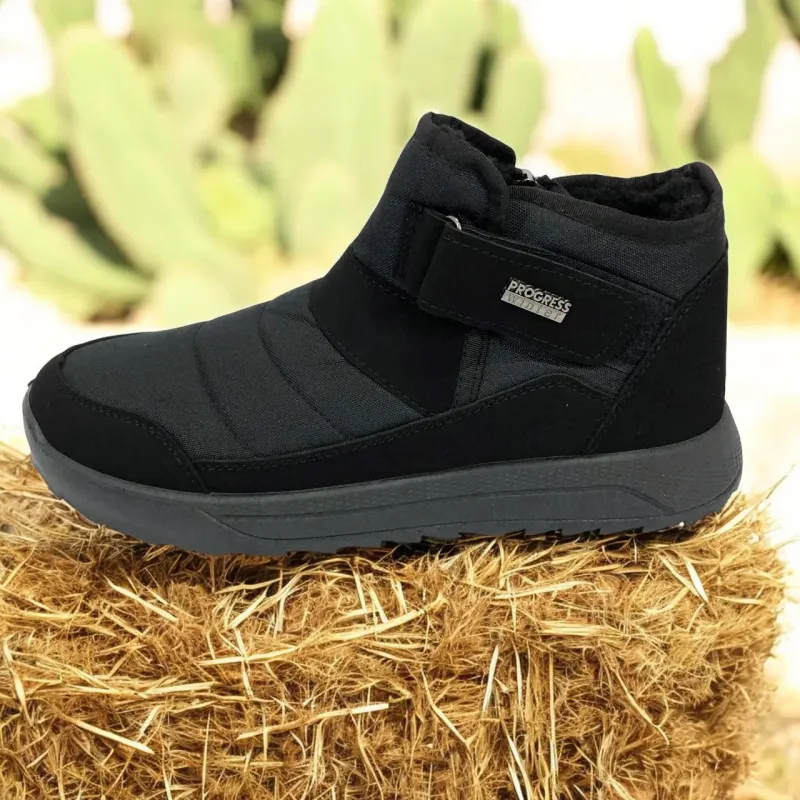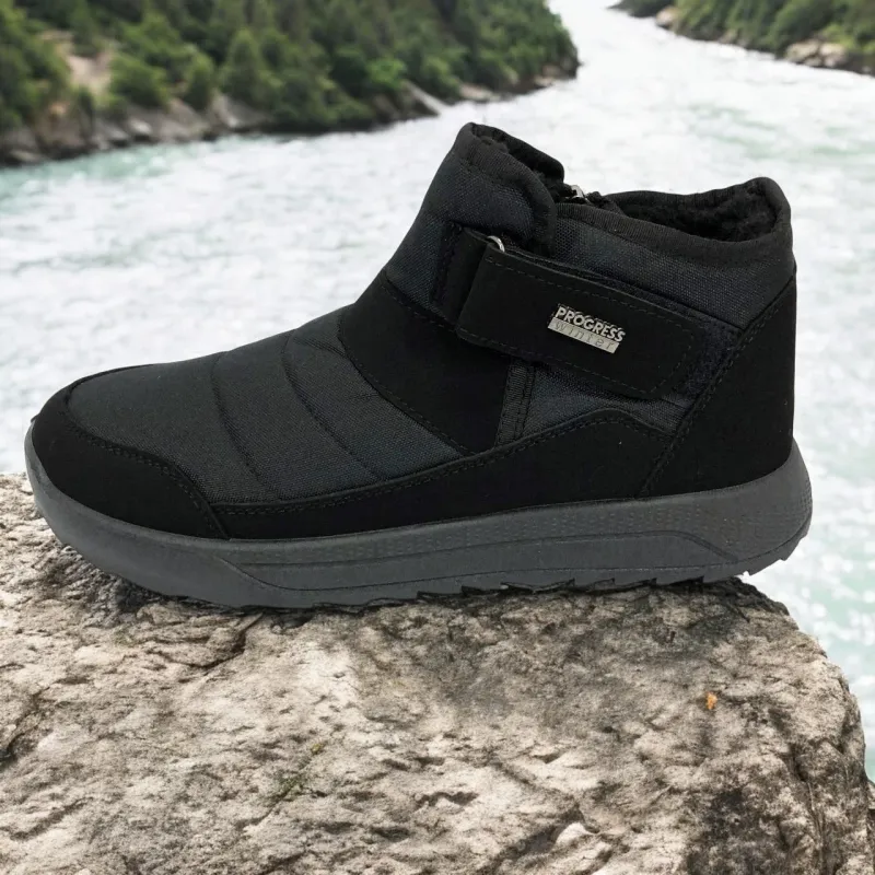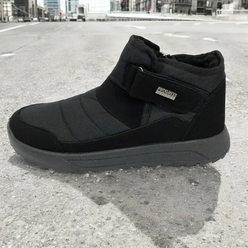 Модель имеет сдержанный современный дизайн в классическом черном цвете, который подходит любому стилю одежды. Эргономичная форма подошвы с легким рельефом гарантирует комфорт при ходьбе и хорошее сцепление с поверхностью. Такие ботинки подходят как для городских условий, так и для прогулок на свежем воздухе в прохладное время года.