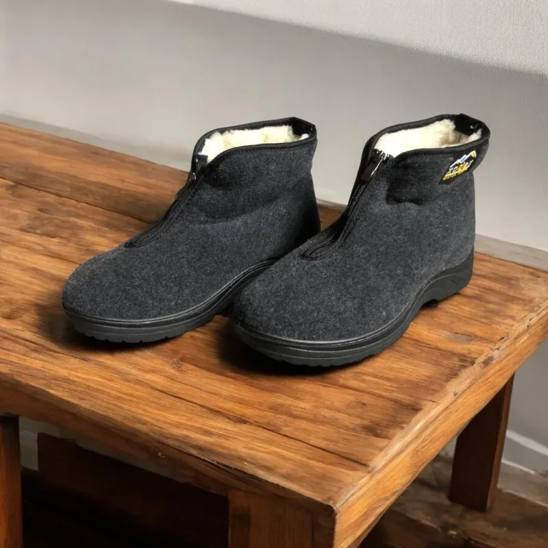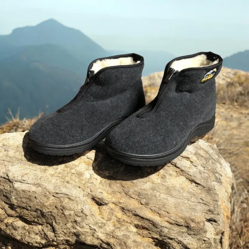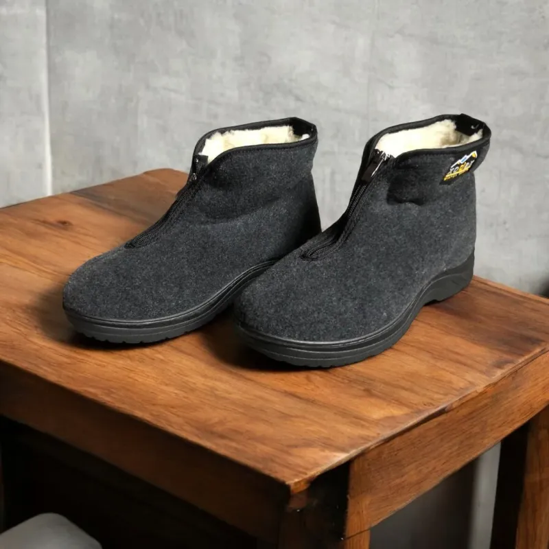 Мужские утепленные ботинки — это удобная и надежная обувь для прохладного времени года. Изготовлены из плотного тканевого материала с ворсистой фактурой, они хорошо удерживают тепло и обеспечивают комфорт даже при длительном ношении. Внутри расположен мягкий мех, создающий чувство уюта и защищающий ноги от холода. Застежка-молния расположена спереди для максимального удобства при обуви.