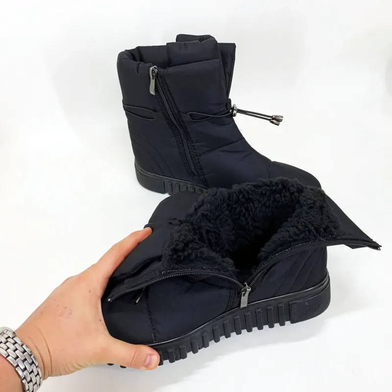 Модель оснащена молнией сбоку для удобной и быстрой обуви. Внутри – теплый мех, создающий приятное чувство уюта даже в мороз. Гибкая подошва с выраженным протектором подходит для ежедневного ношения в городских условиях и не скользит. Эти ботинки легко сочетаются с пальто, пуховиком или курткой, создавая гармоничный зимний образ.