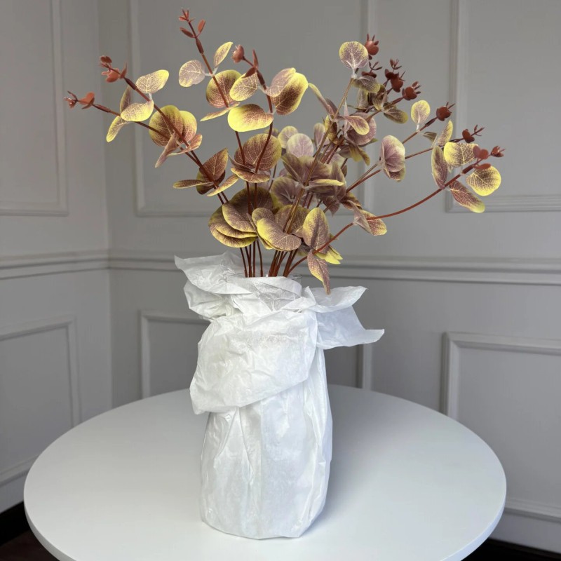 Искусственный букет эвкалипта выполнен в природной декоративной стилистике с полупрозрачными листьями и выразительной текстурой жилок. Округлые листья разного размера создают легкий объем и смотрятся гармонично как в минималистических, так и в акцентных интерьерах. Ветви имеют продуманную форму, что позволяет легко корректировать композицию под нужную высоту и направление.